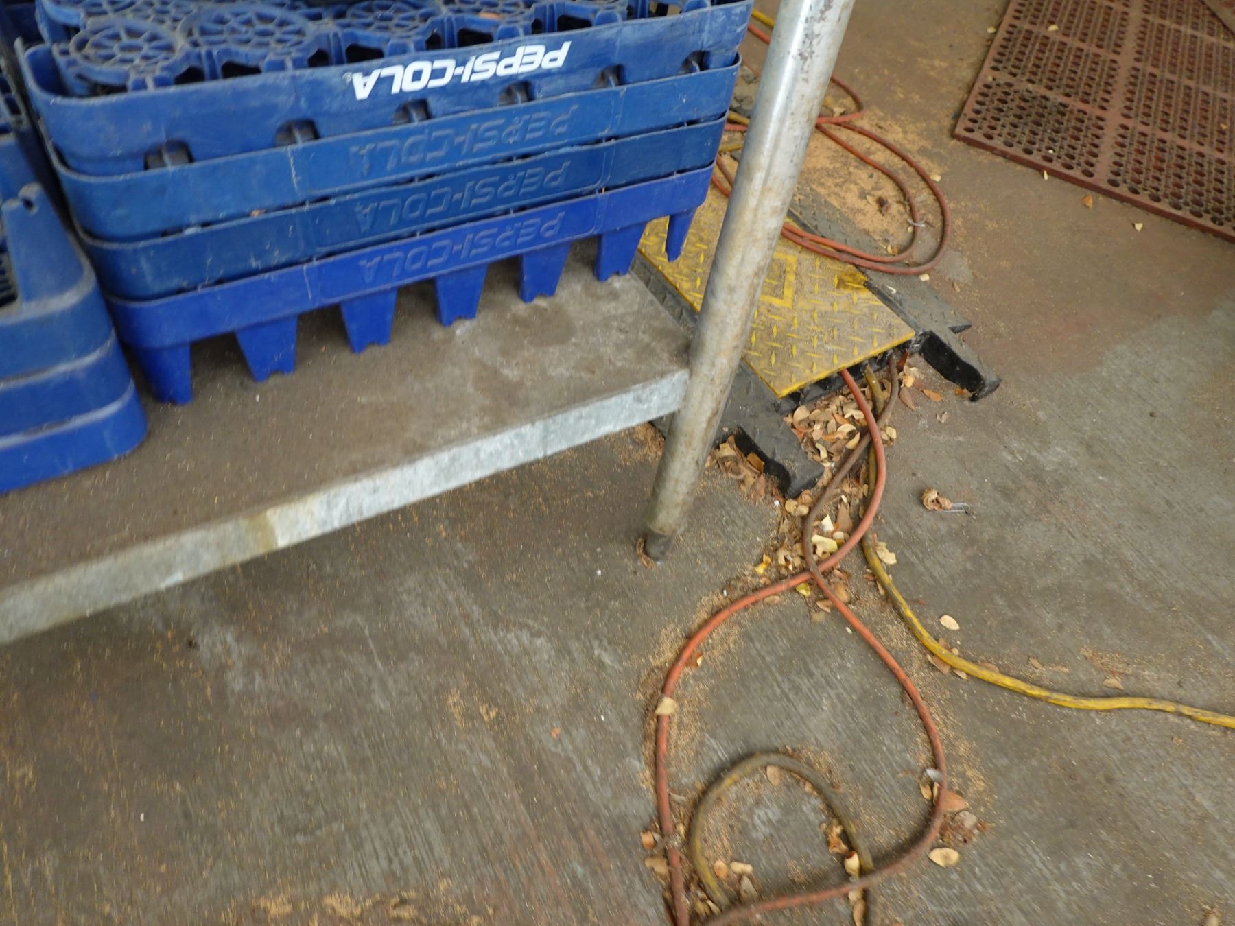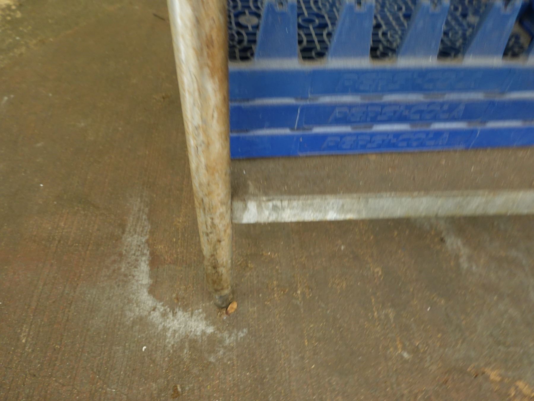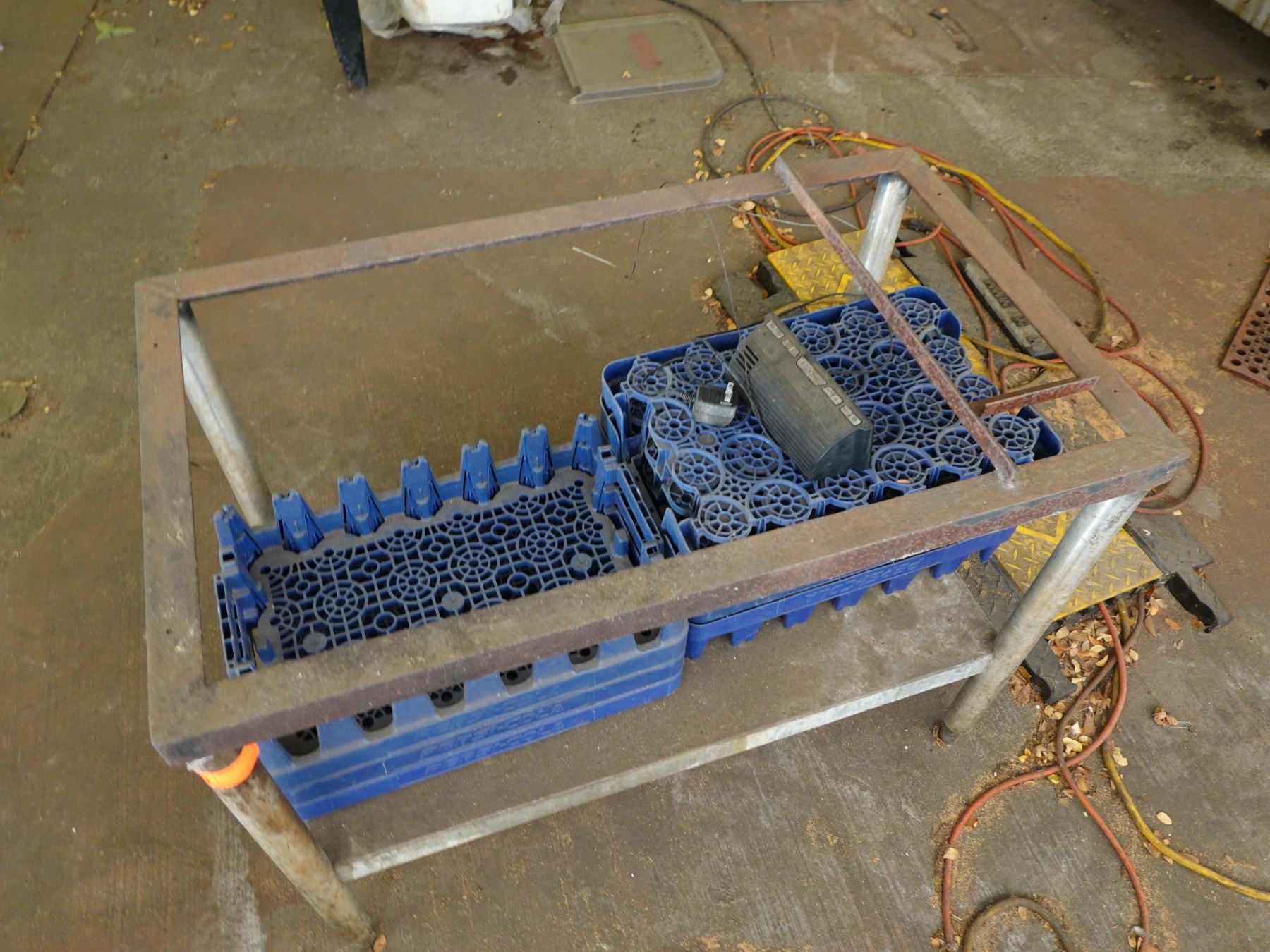 Metal Table Frame w/ Undershelf 36" x 21" x 27"H & Blue Plastic Racks.