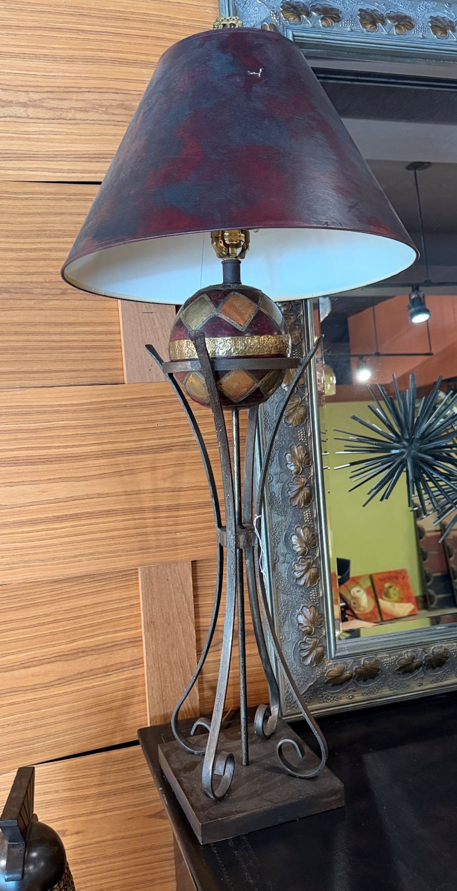 Metal Table Lamp w/ Globe Accent & Black Shade 36"H