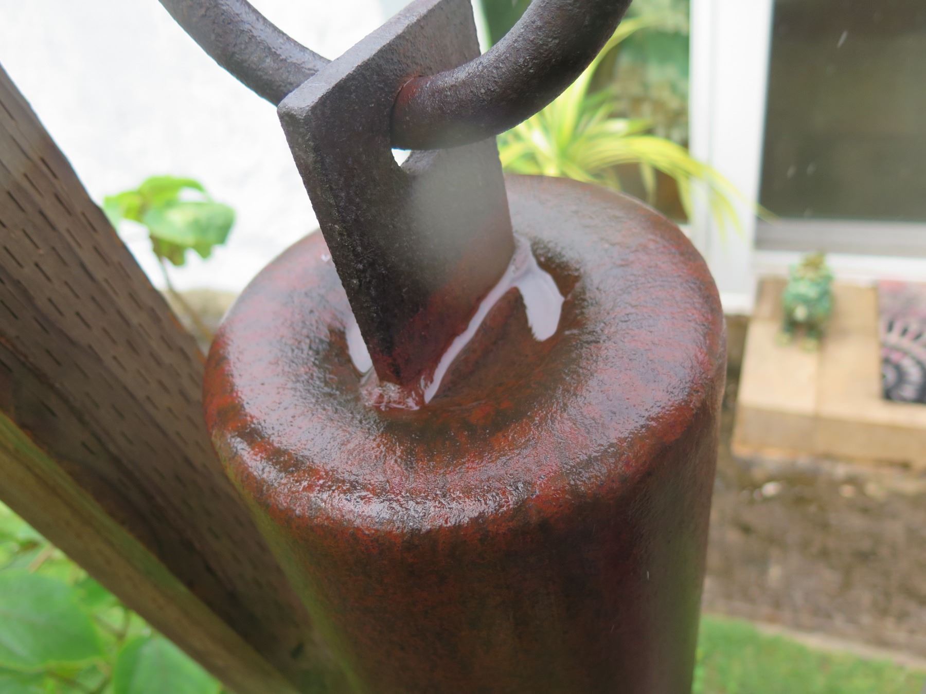 Metal Wind Bell, Red & Brown, Maker's Mark, 6.5" Dia, 27"H