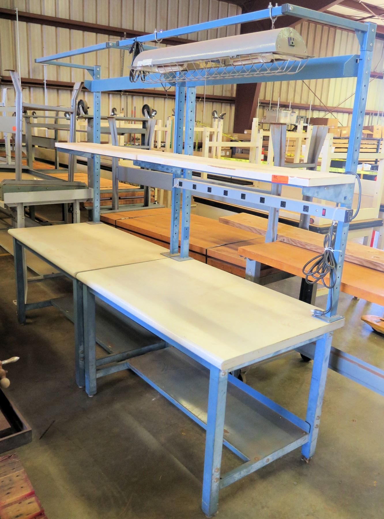 Metal Work Station w/ 2 Tables, Rack & Overhead Light