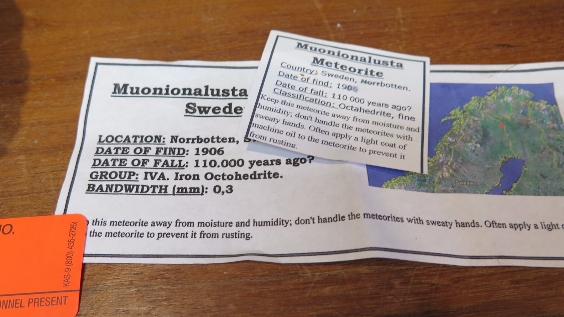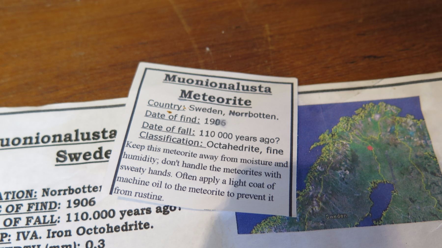 Meteorite - Found 1906, Norbotten, Sweden, Estimated Fall to Earth 110,000 Years