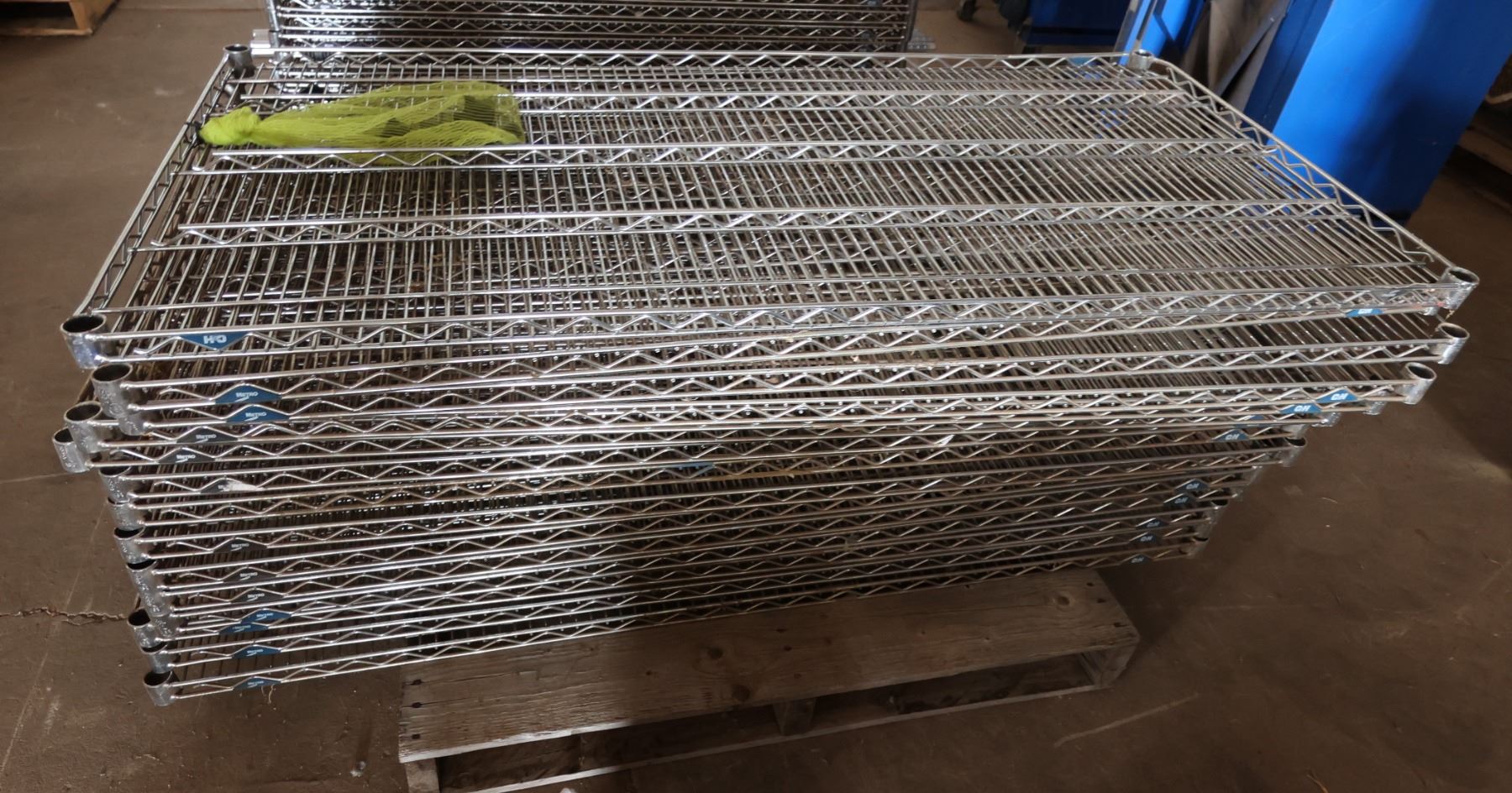 Metro Wire Mesh Shelving Sections w/ Wheels & Poles (unassembled)