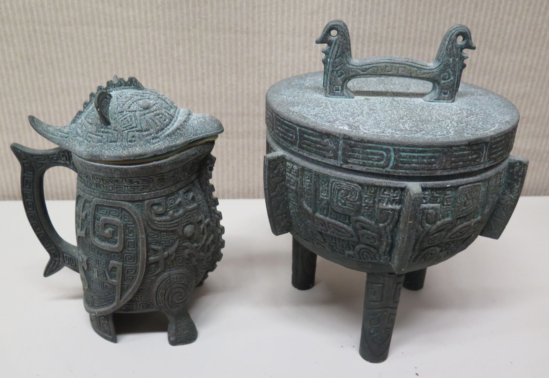 Mid-Century Mayan Ice Bucket & Asian Verdigris Design Pitcher