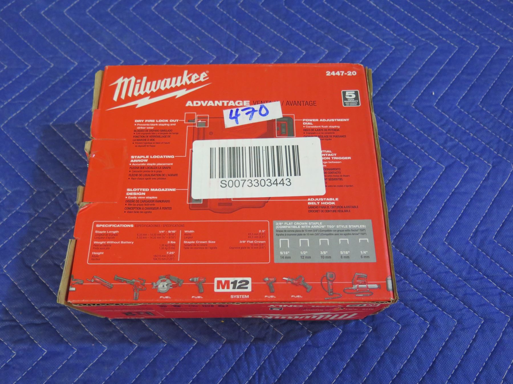 Milwaukee 2447-20 M12 Crown Stapler New in Box (Tool Only)