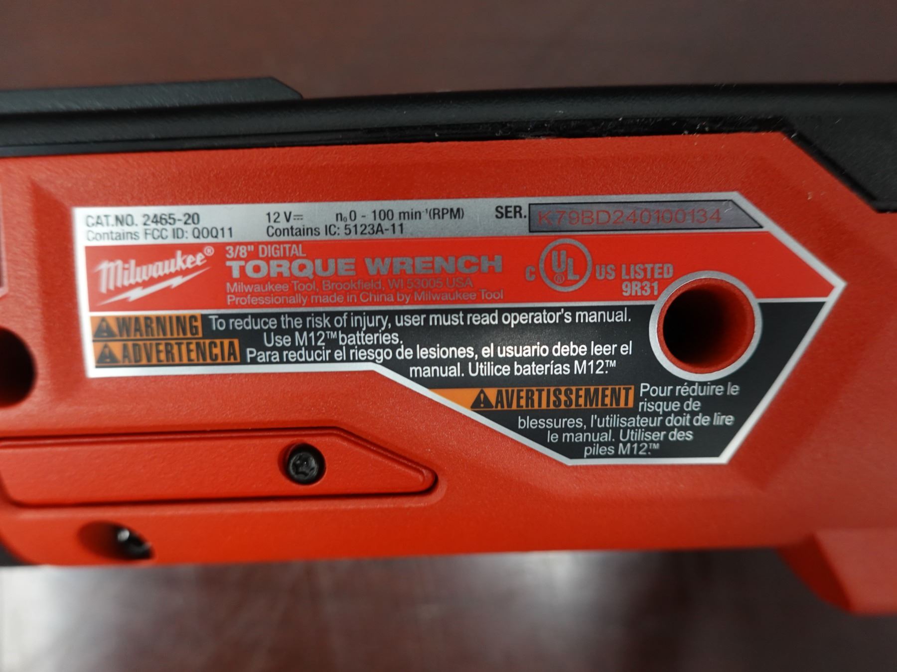 Milwaukee 2465-20 3/8" Digital Torque Wrench in Hard Case w/ M12 Charger