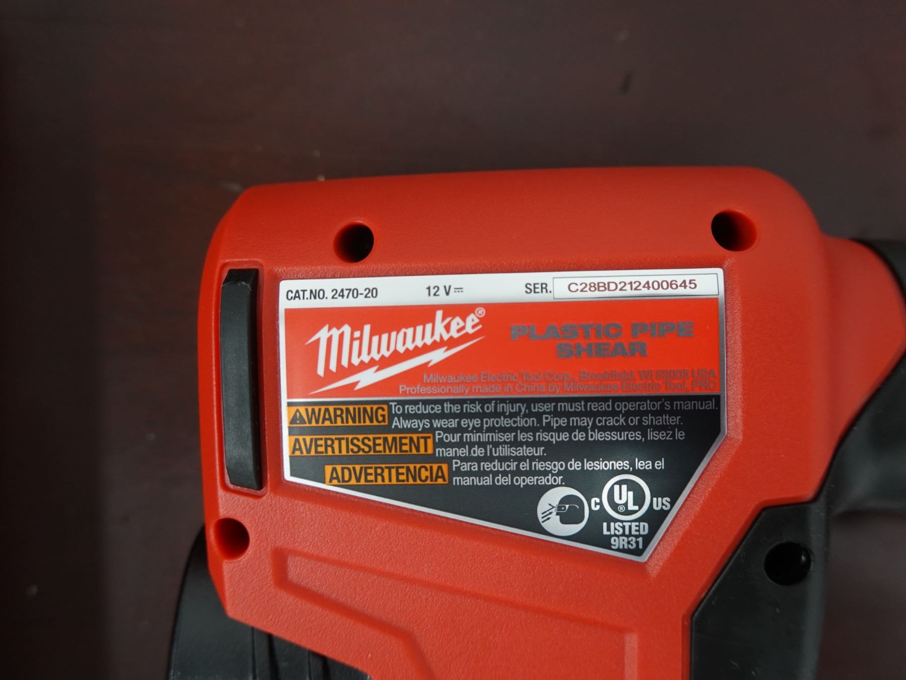 Milwaukee 2470-21 M12 Cordless PVC Plastic Pipe Shear Kit w/ Charger in Hard Case