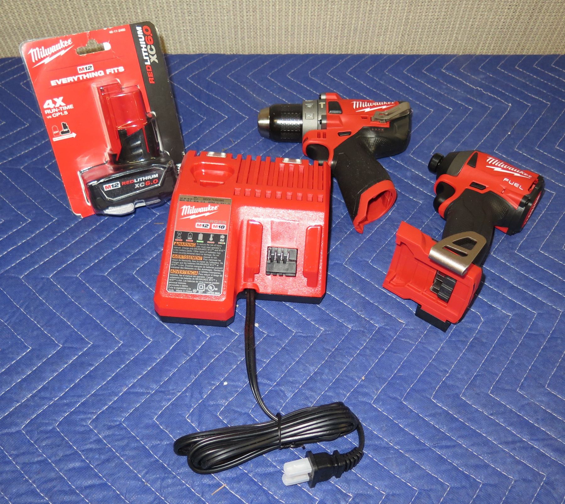 Milwaukee 2504-20 Hammer Drill/Driver  & 2853-20 Impact Driver w/ 48-11-2460 Battery & 48-59-1812 Ch