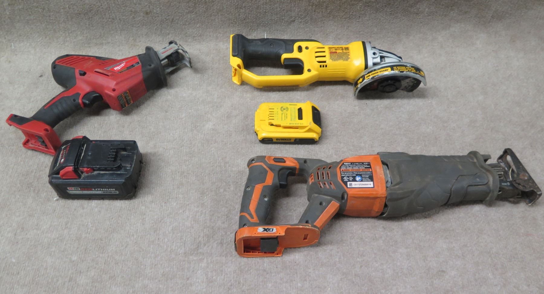 Milwaukee 2625-20 Hackzall & Ridgid R8641 Reciprocating Saw, DeWalt DCG412 Grinder, etc