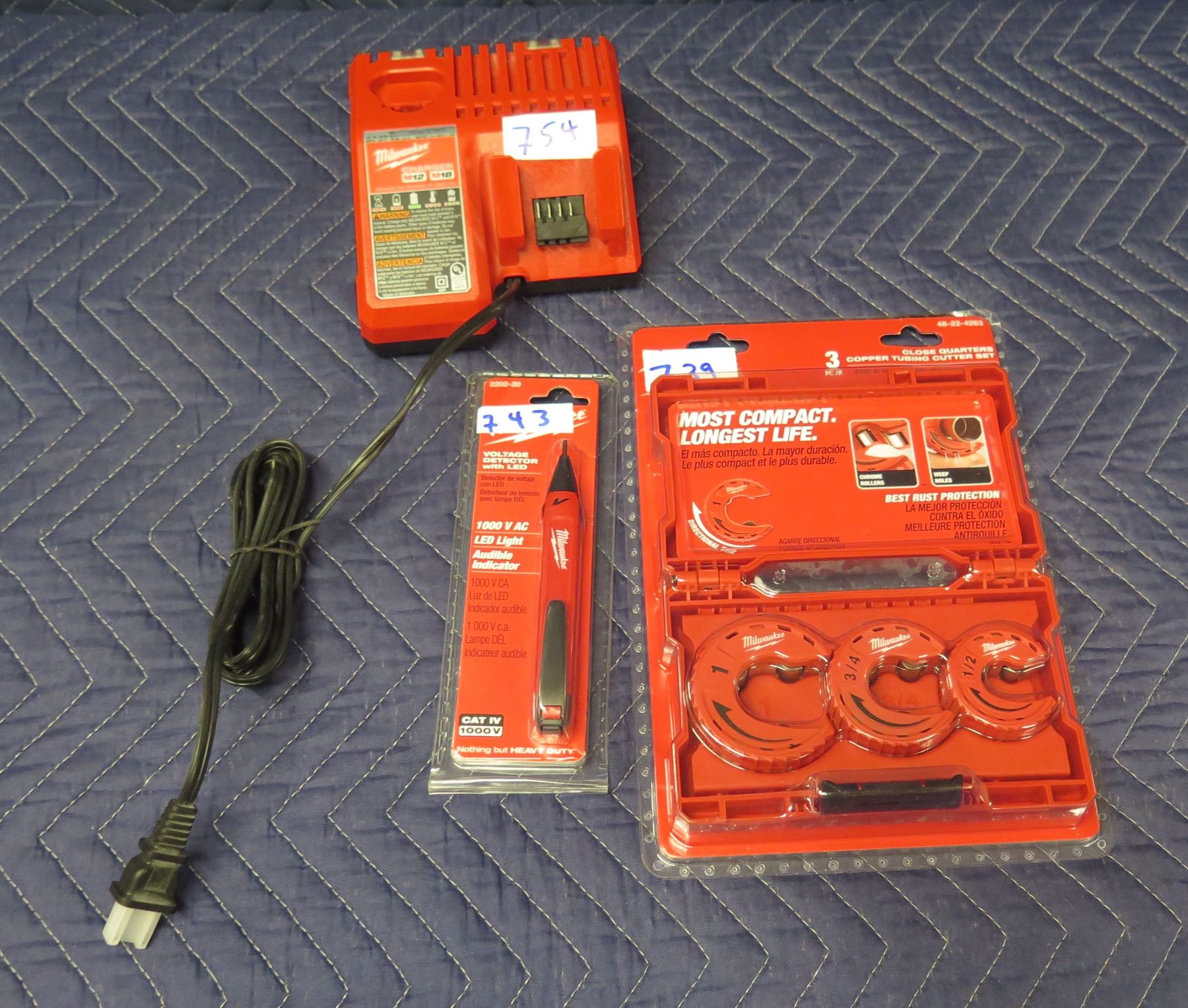Milwaukee 48-22-4263 Tubing Cutter Set, 2202-20 Voltage Detector & 48-59-1812 Charger