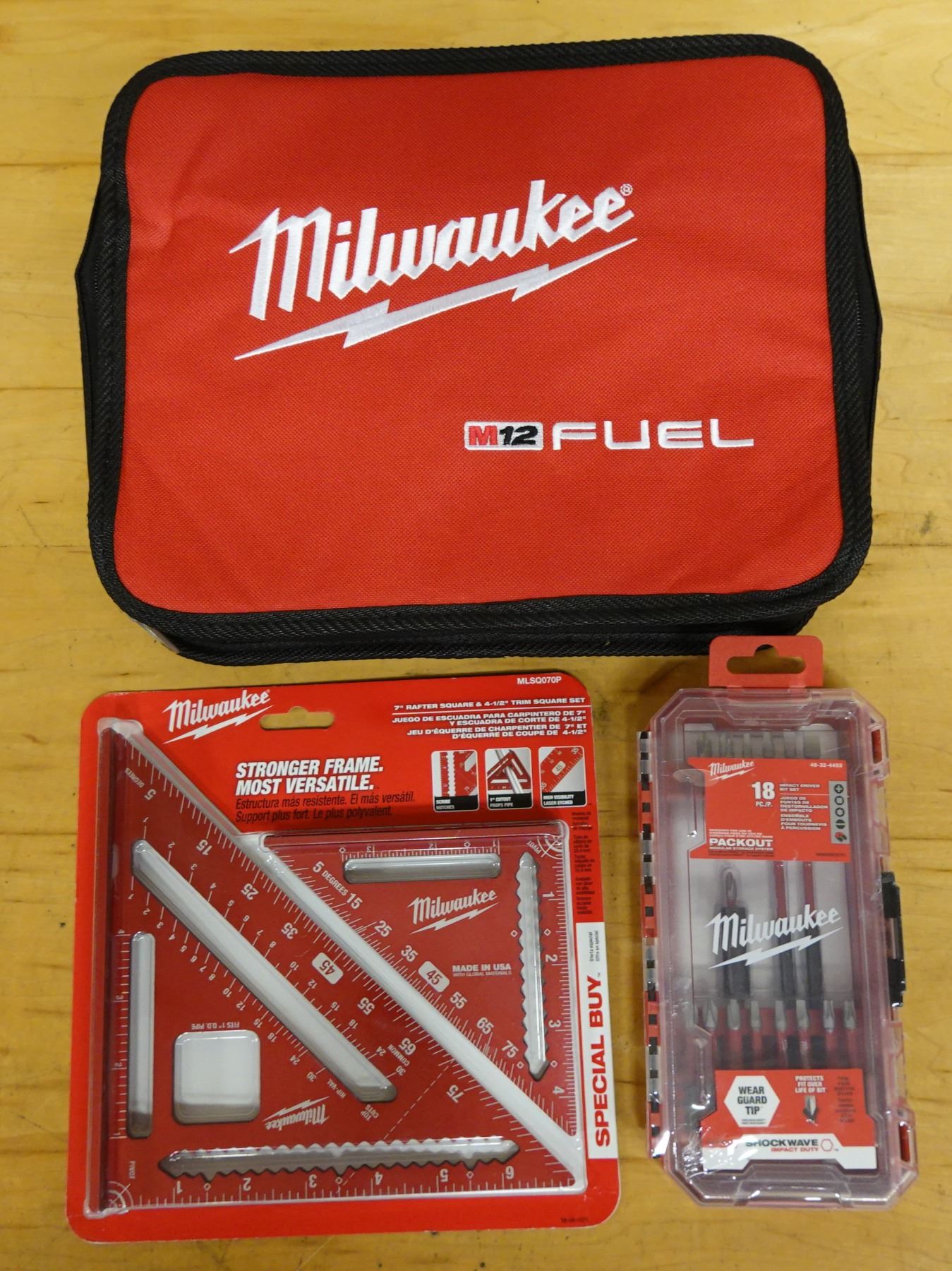 Milwaukee MLSQ070P Rafter/Trim Square, 48-32-4403 Impact Driver Bit Set & Zipper Carry Bag New
