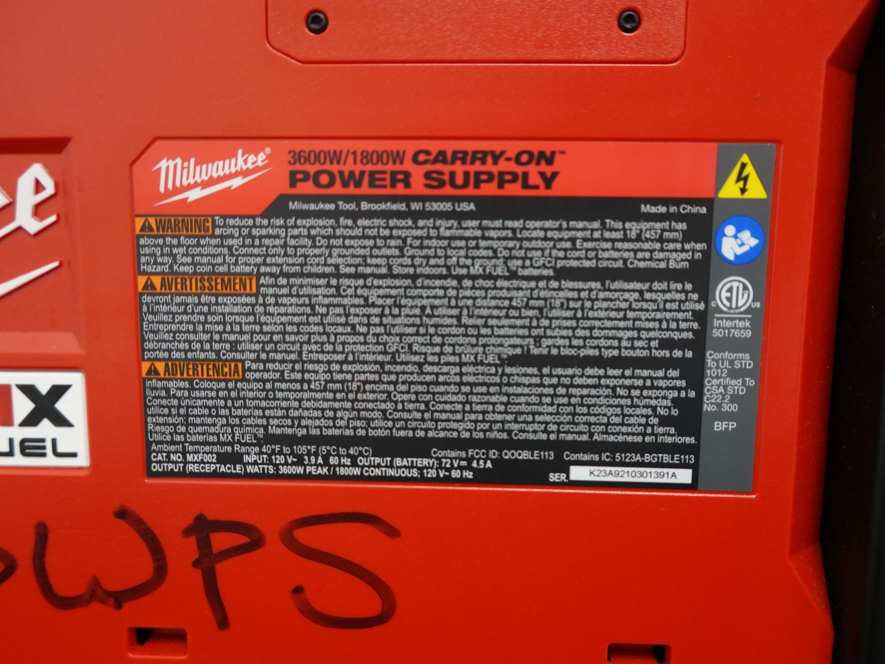 Milwaukee MXF002 MX Fuel 3600W/1800W Carry-On Power Supply