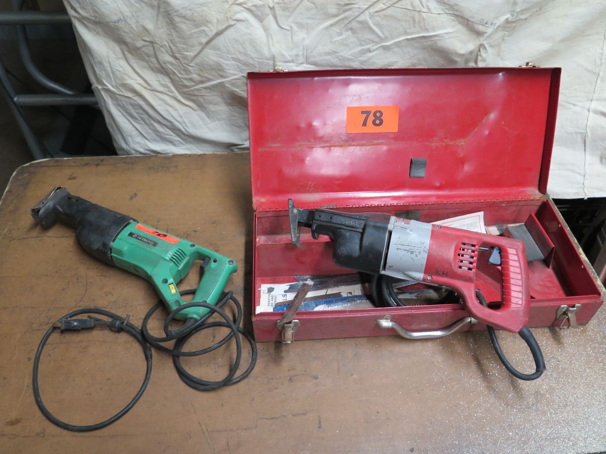 Milwaukee Sawzall w/Misc. Blades, Case & Hitachi Sawzall