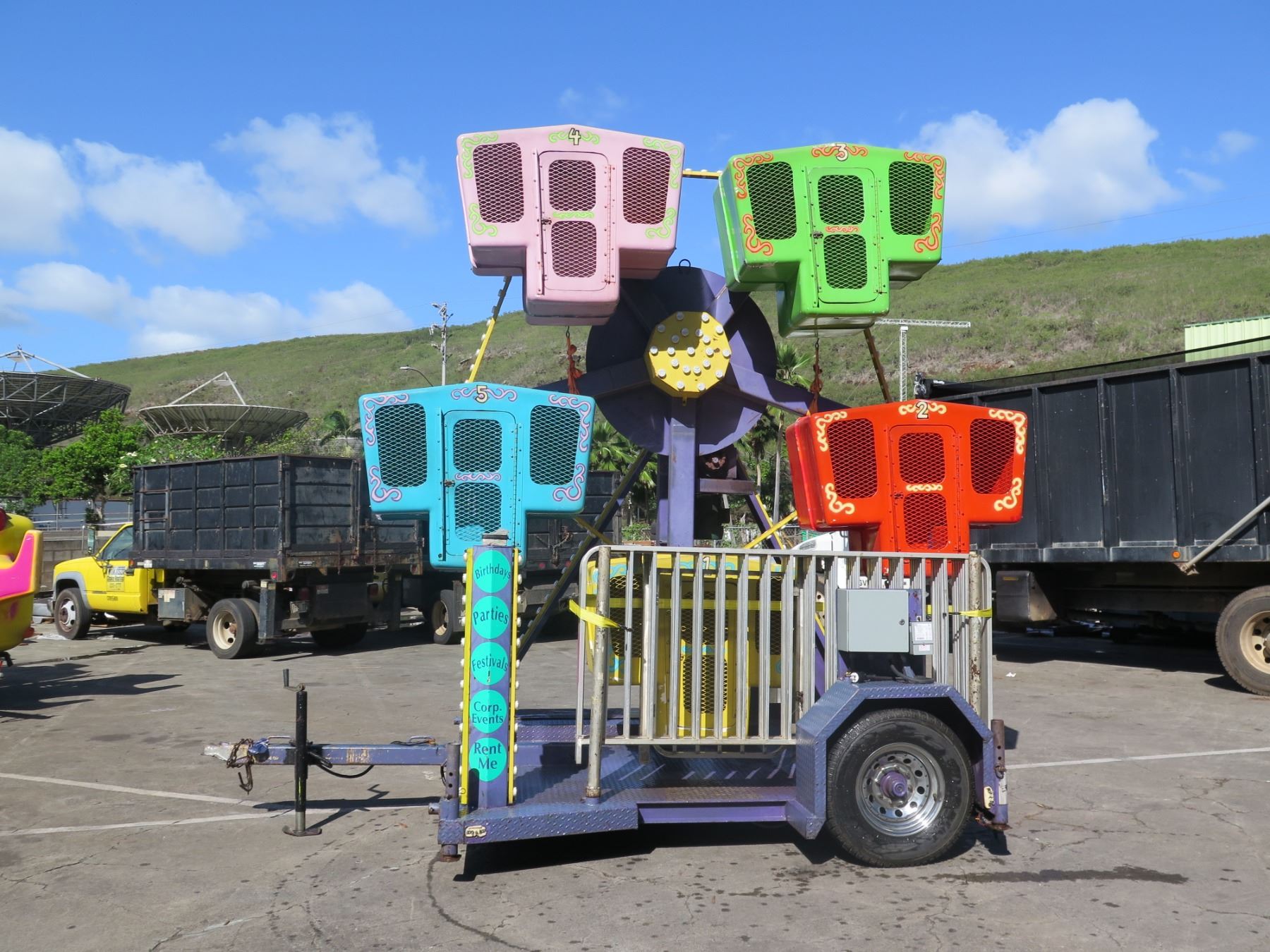 Mini Ferris Wheel Carnival Ride. The Mini Ferris Wheel Ride manufacturer: Amusement rides. This mini ferris wheel ride has five buckets with two - four kids per bucket. Recently upgraded with LED lights. Space required 15'x25'. Comes with fencing. The opening bid is $1000, with a reserve price of $7,000. Oahu Auctions is not obligated to sell this if the reserve price is not reached. However, the highest bid (if under $7,000) may be considered. The current owner reports that there are no service or maintenance records for this ride. It is not registered and does not have plates. Seller recommends that a qualified technician examines this ride before putting it into use. This item is in Pearl City. Pick-up will be by appointment only.