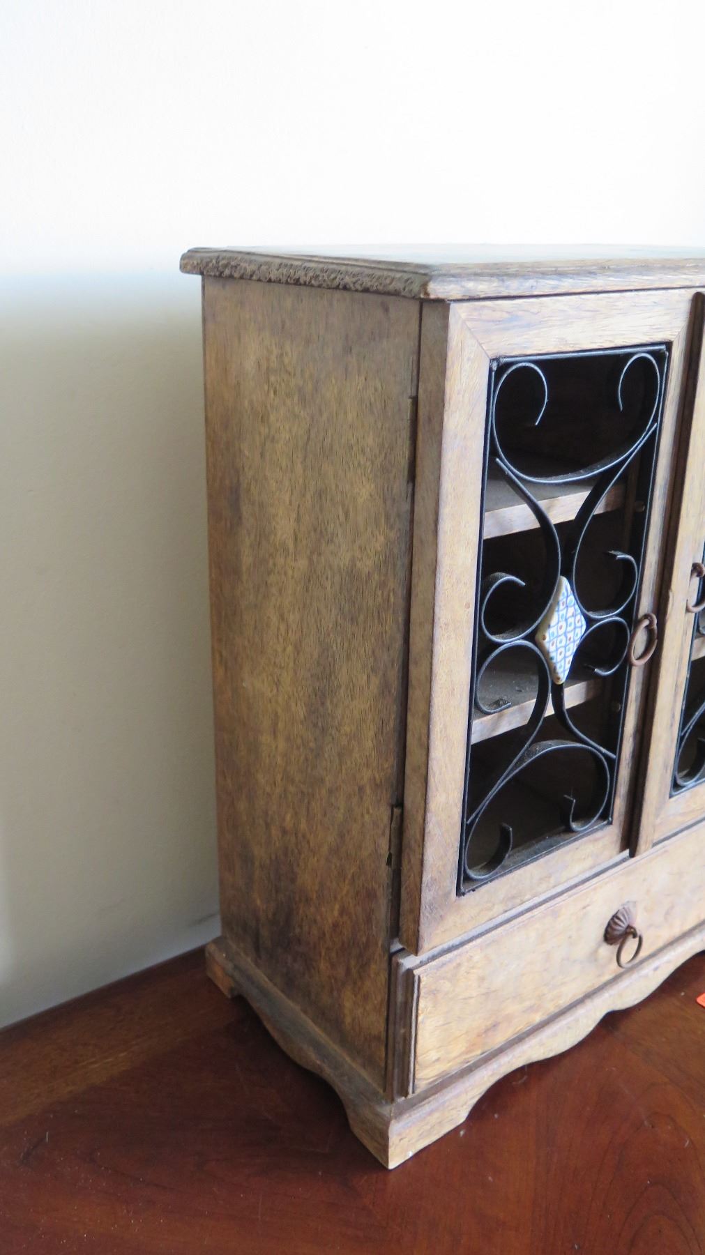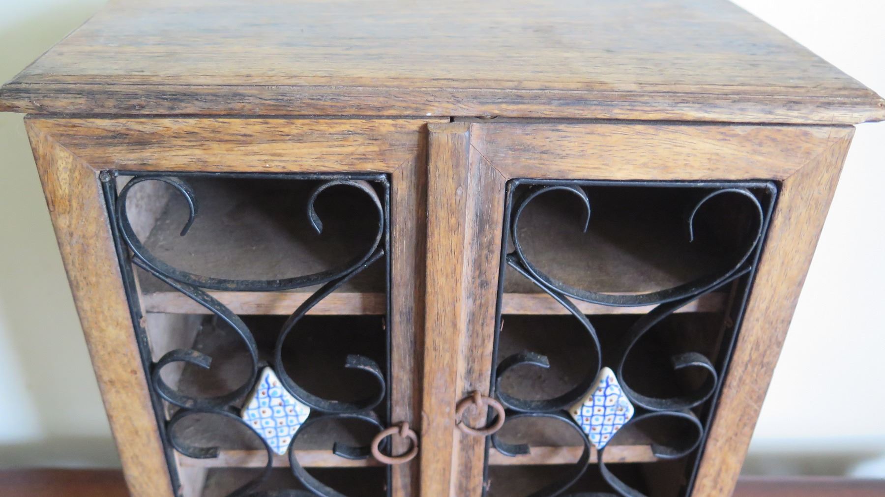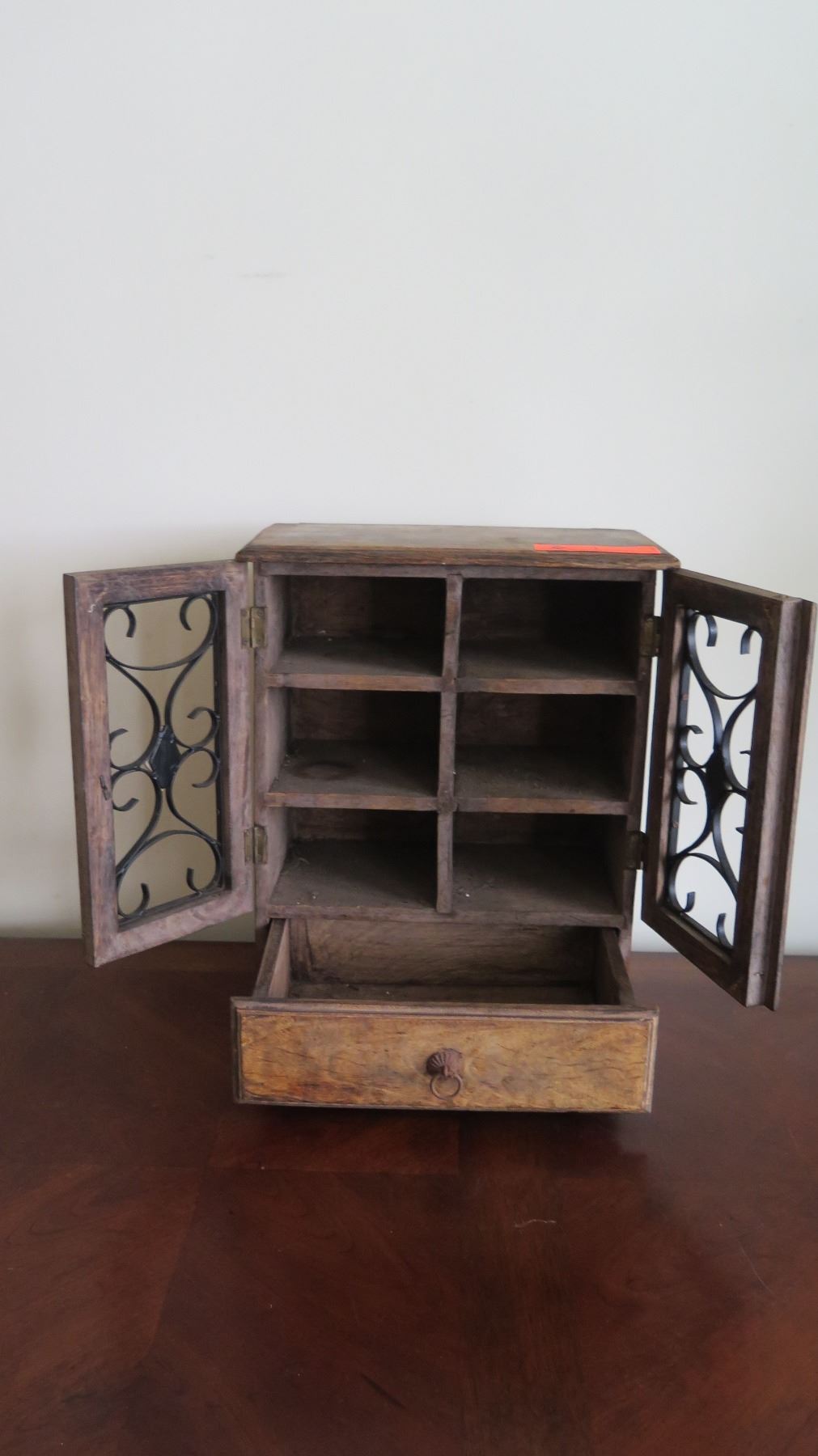 Tall Steepled Carved Indonesian Wooden Cabinet, 40" H, Carved Figural & Skull Motifs