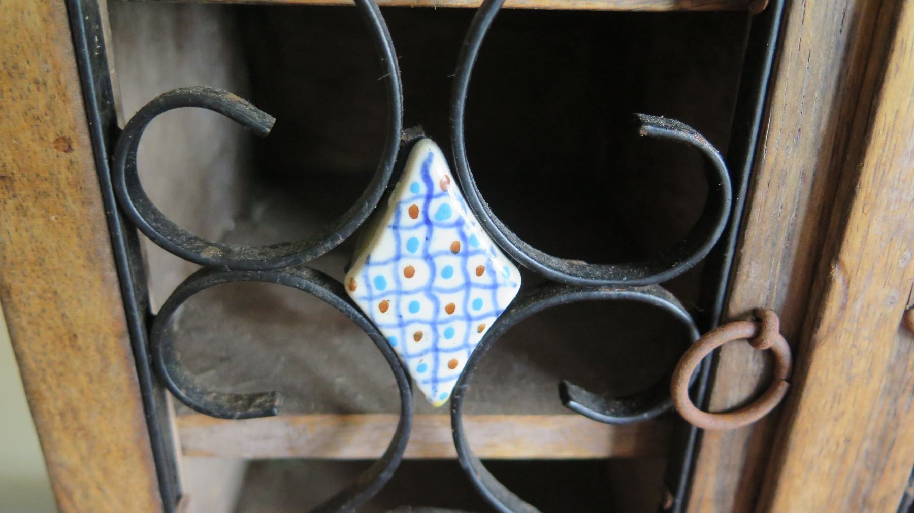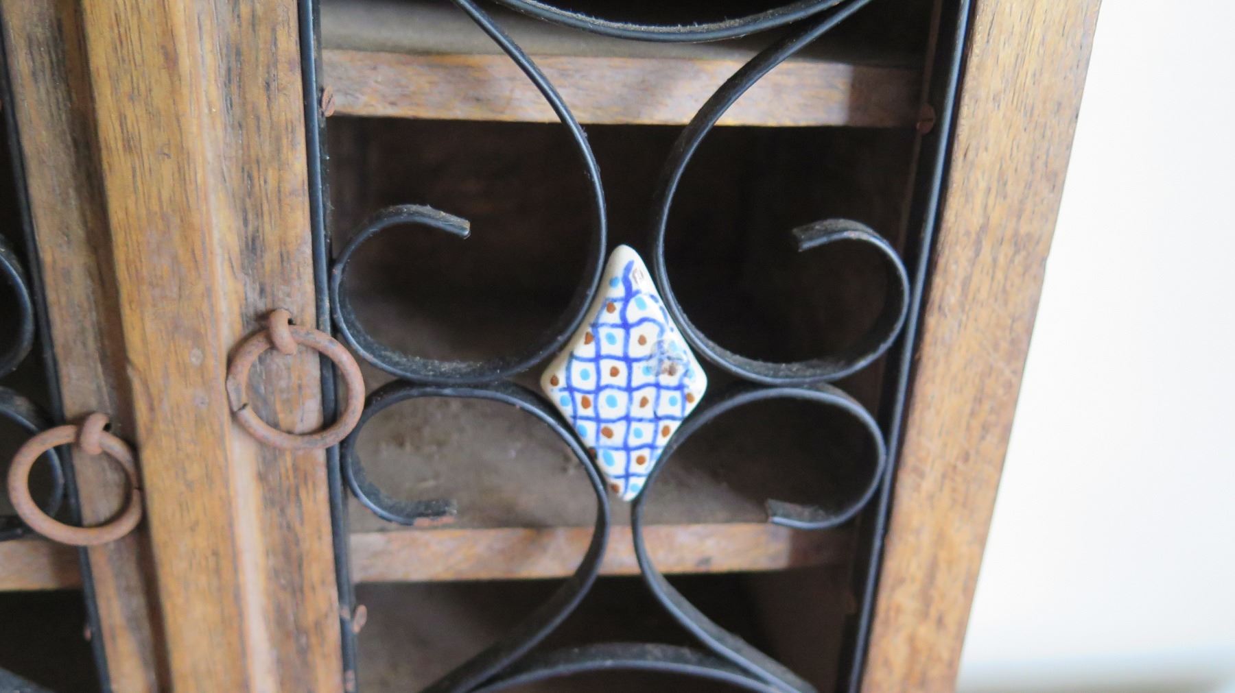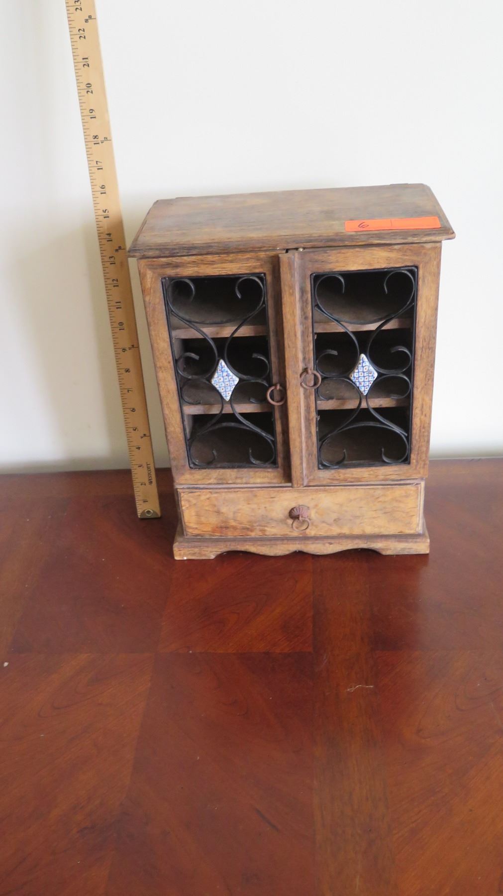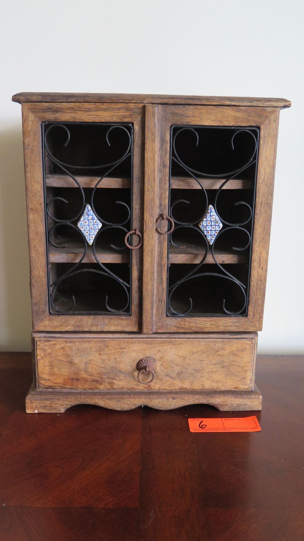Tall Steepled Carved Indonesian Wooden Cabinet, 40" H, Carved Figural & Skull Motifs