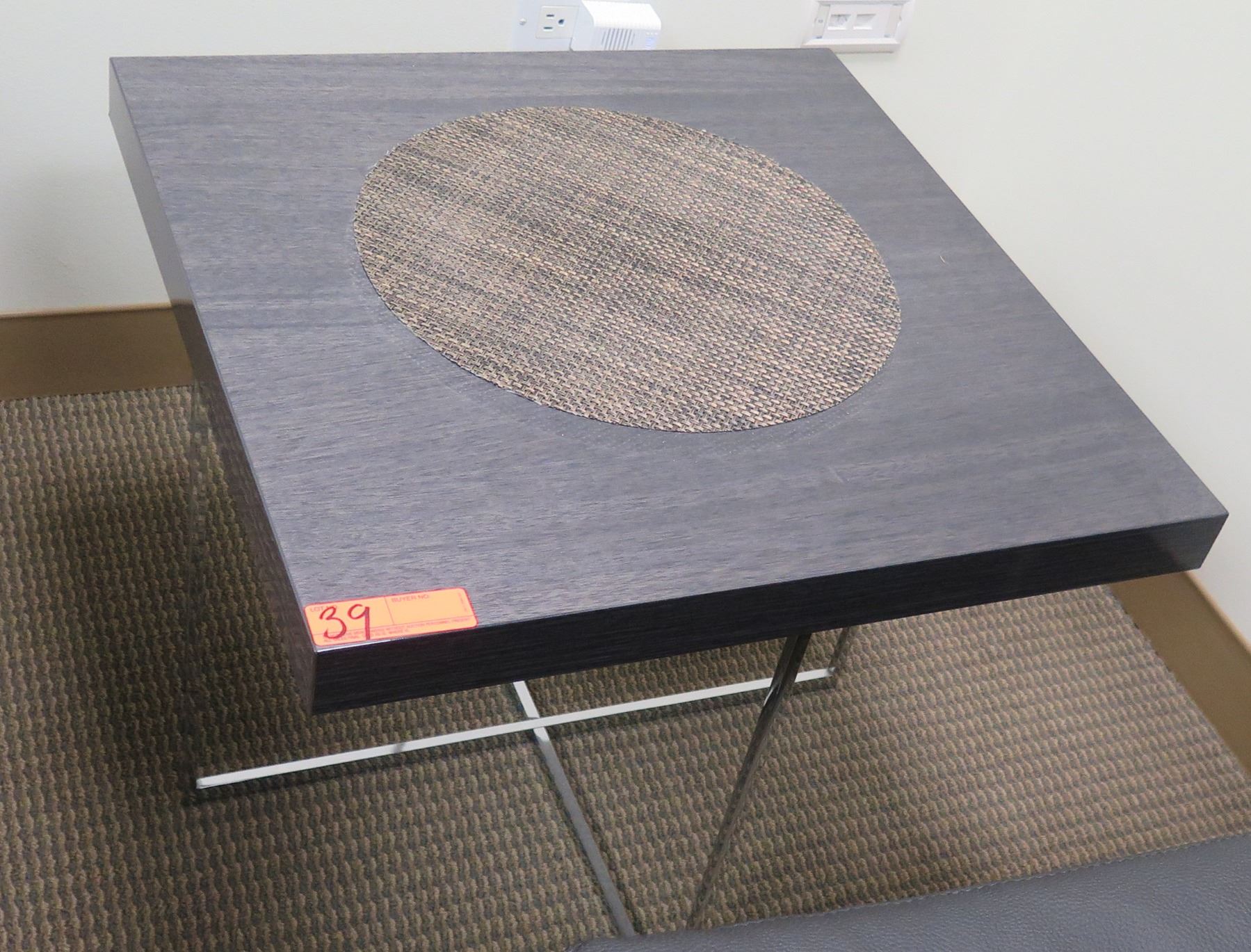 Minimalist Square Wooden Table w/ Chrome Base & Woven Center