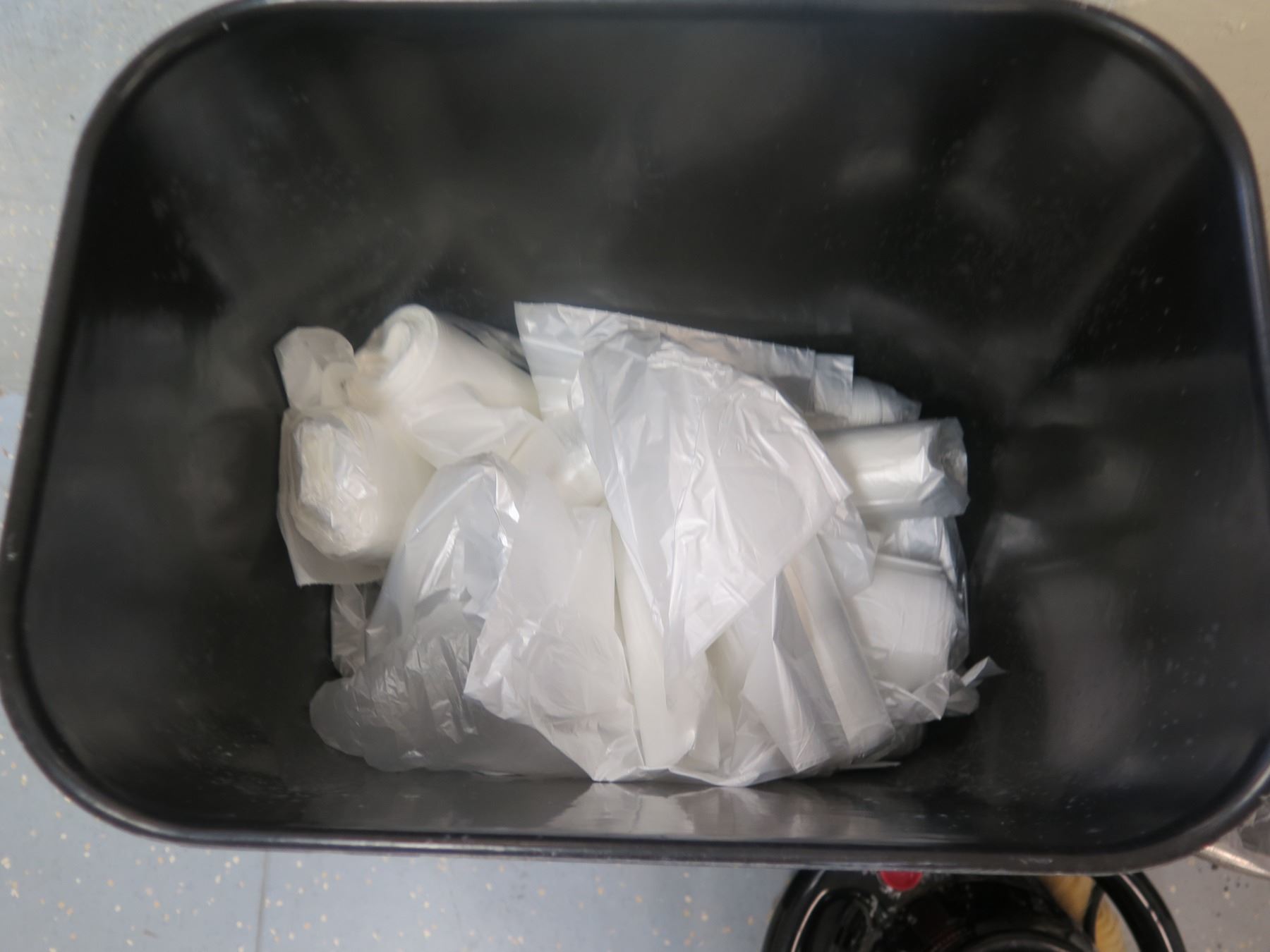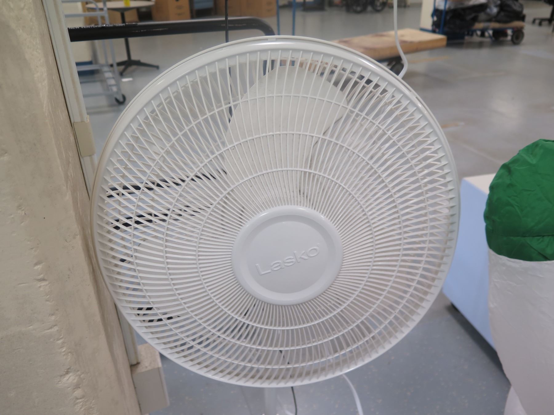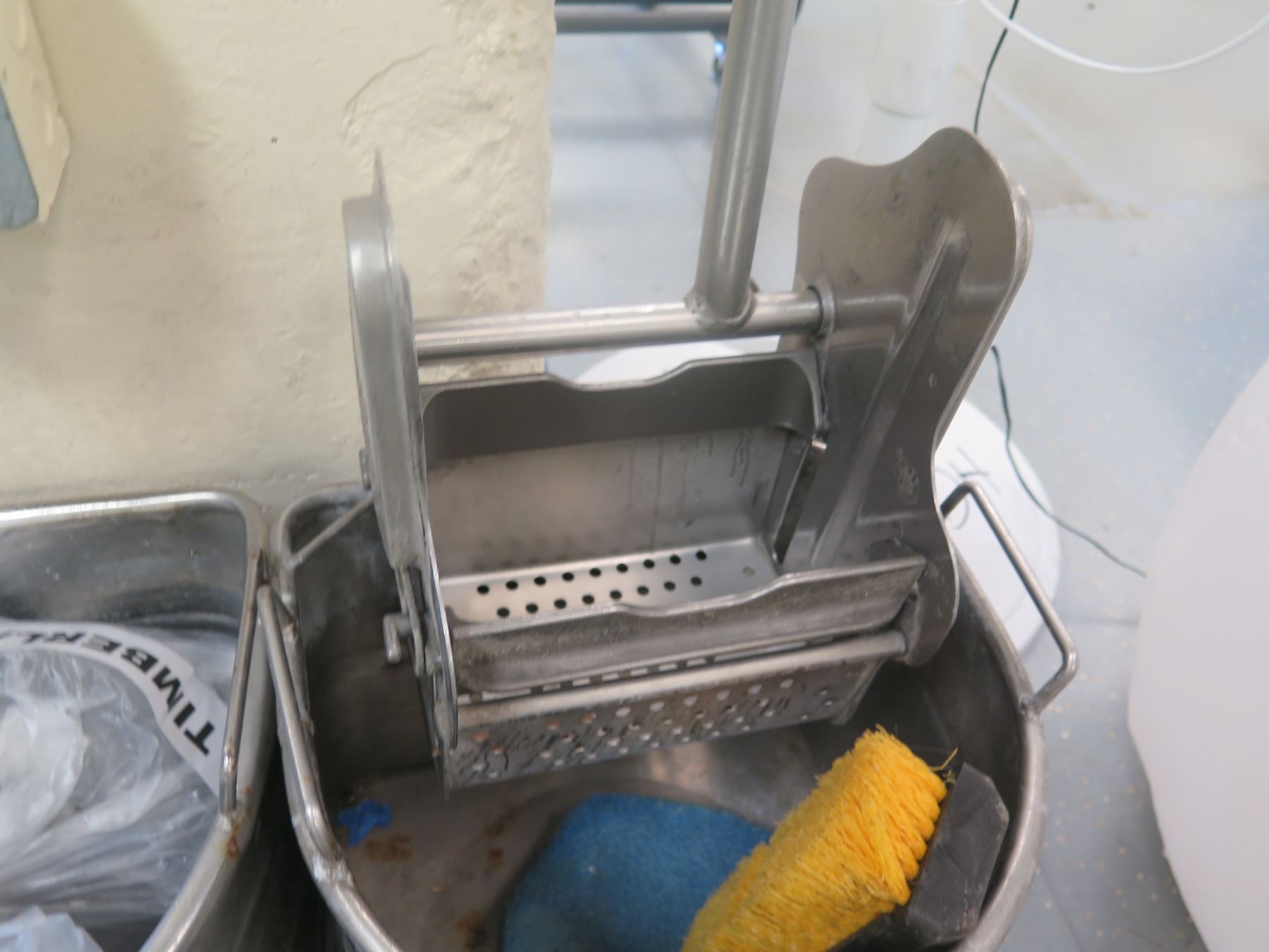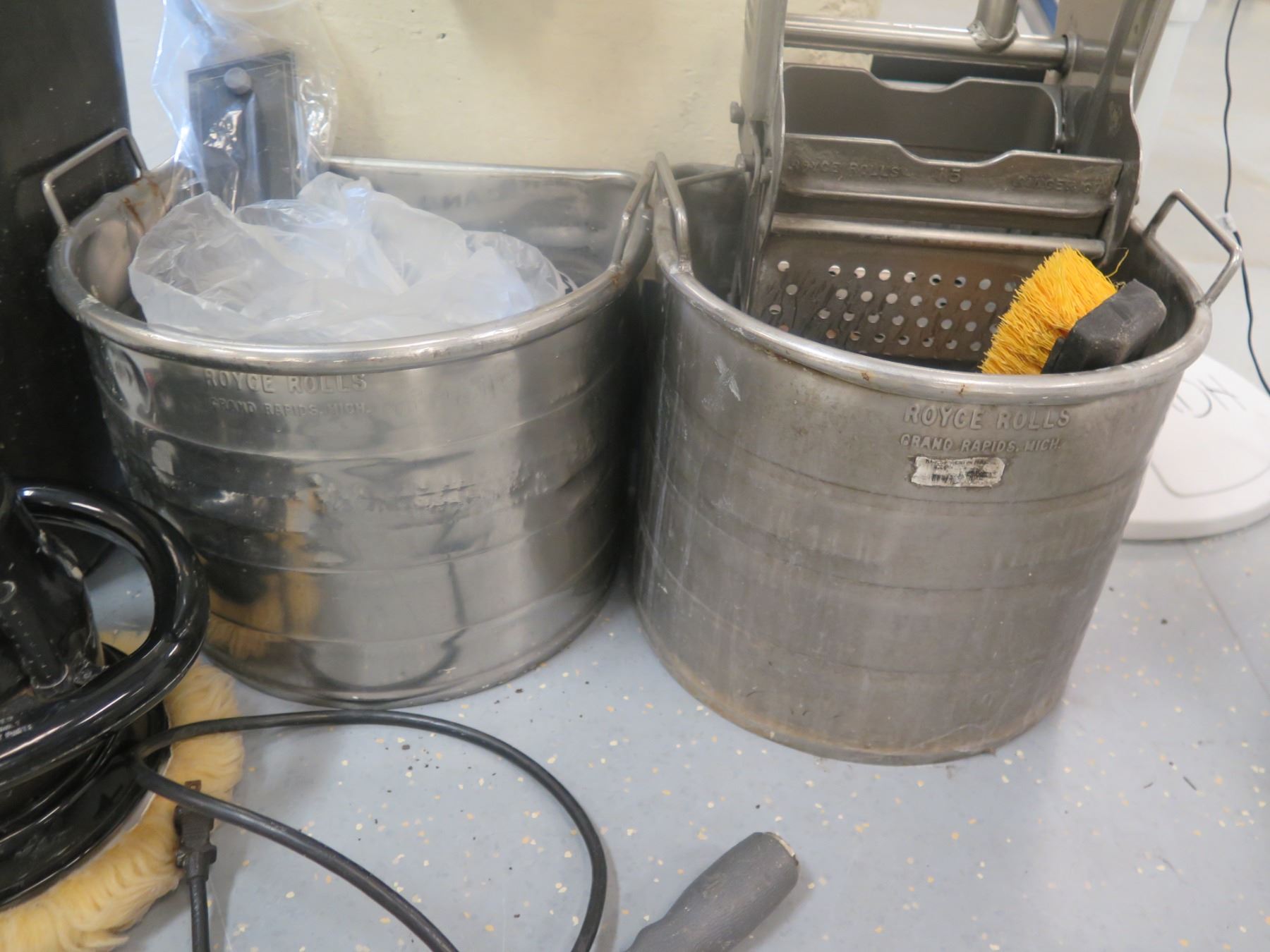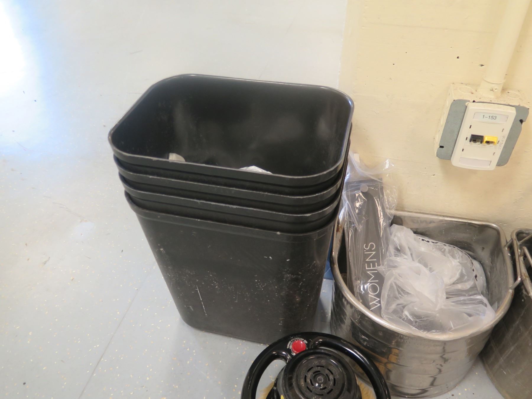 Misc Cleaning Equipment: Waste Cans, Mop Bucket, Fan, etc w/ Inflatable Snowman