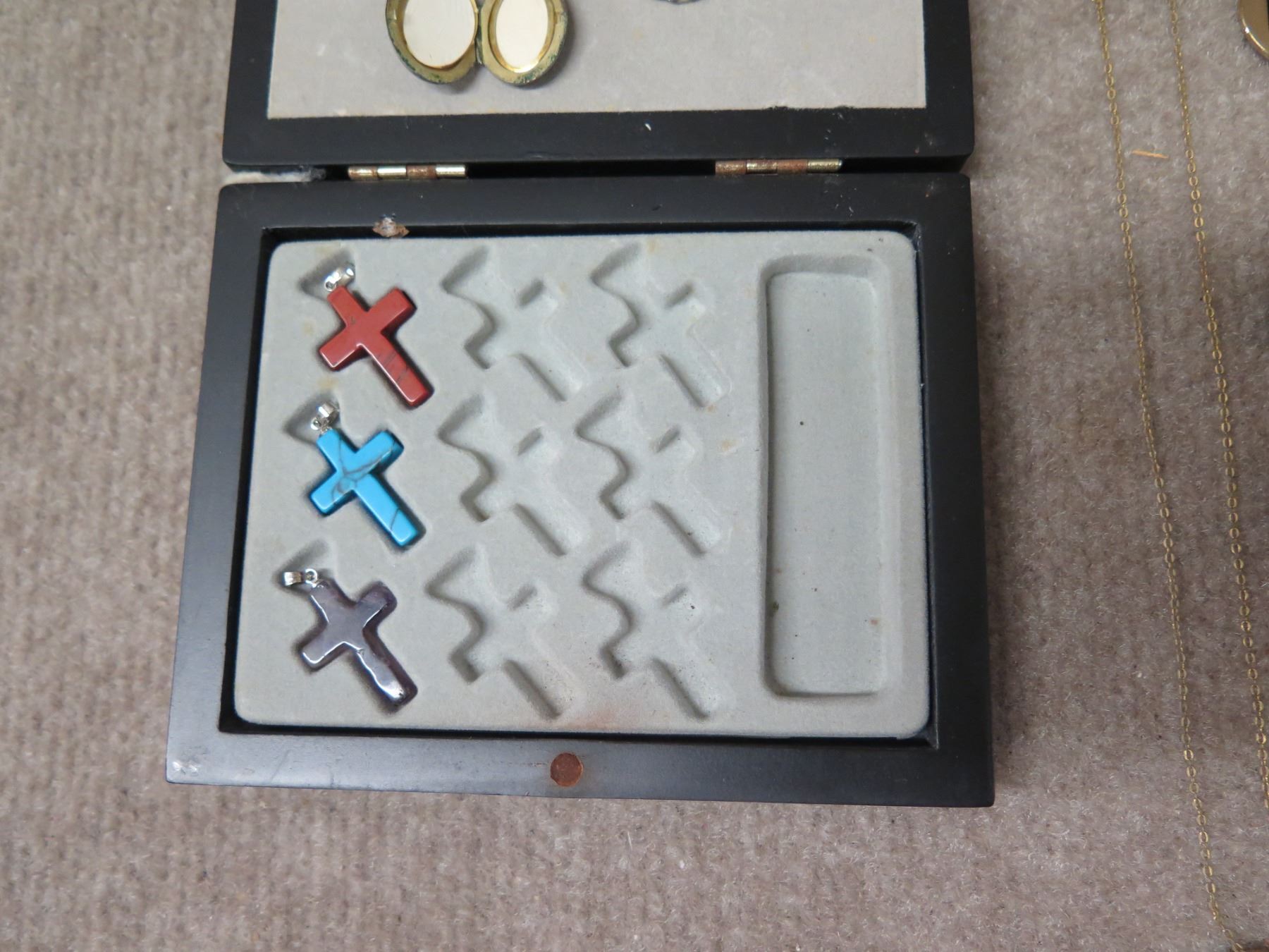 Misc Costume Jewelry: Beaded Bracelet, Necklaces, Rings, Pins & Box Cross Pendants