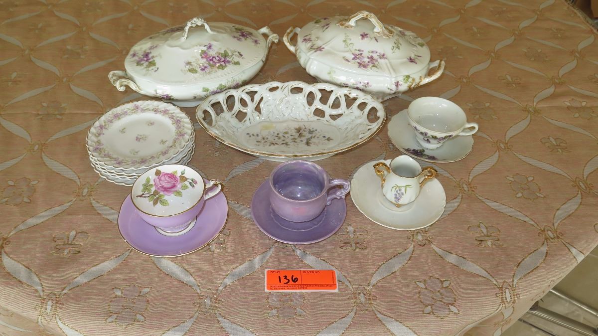 Misc. Floral/Lilac China - Serveware, Plates, Cups, Saucers, Creamer - Various Markings