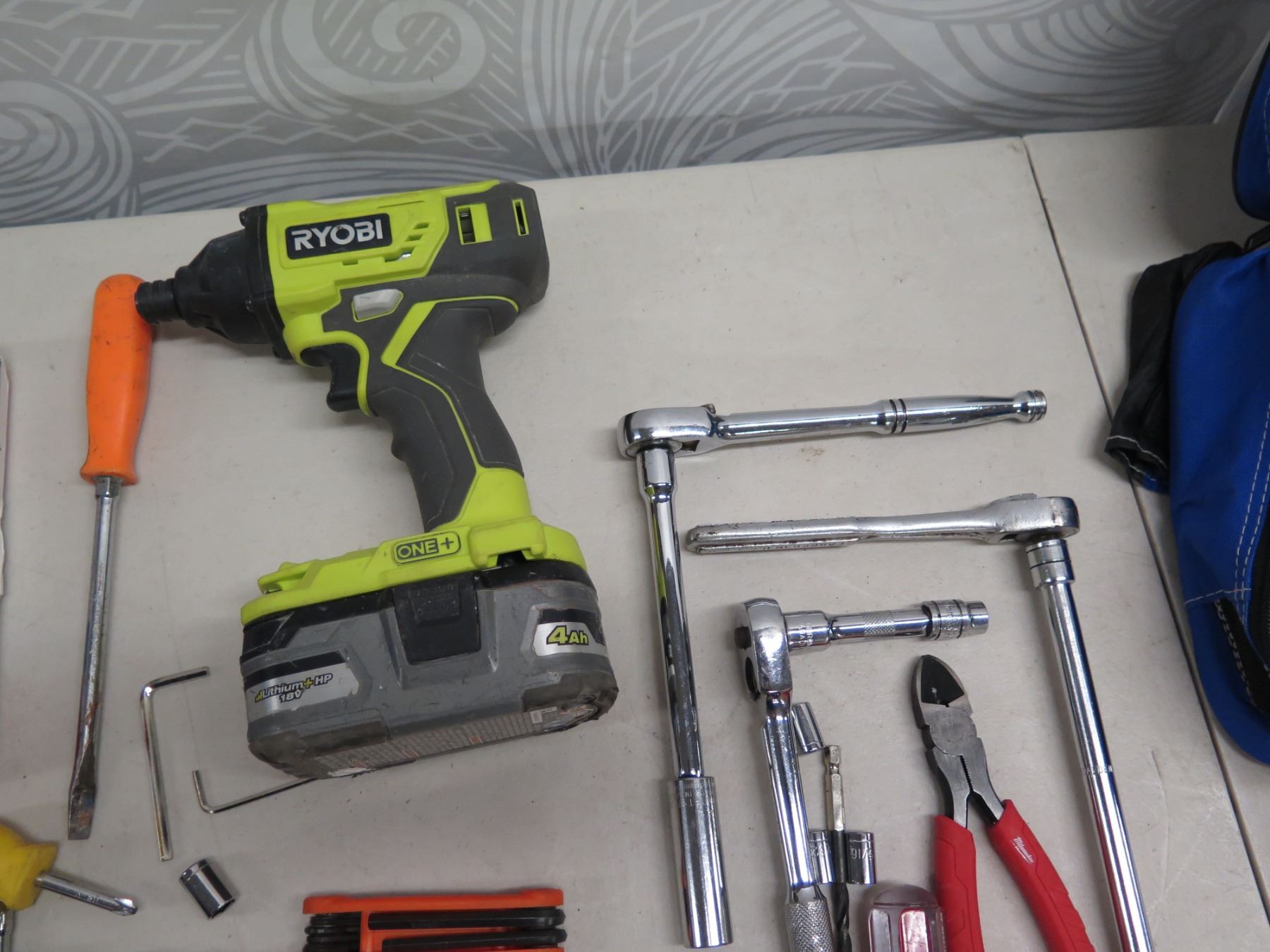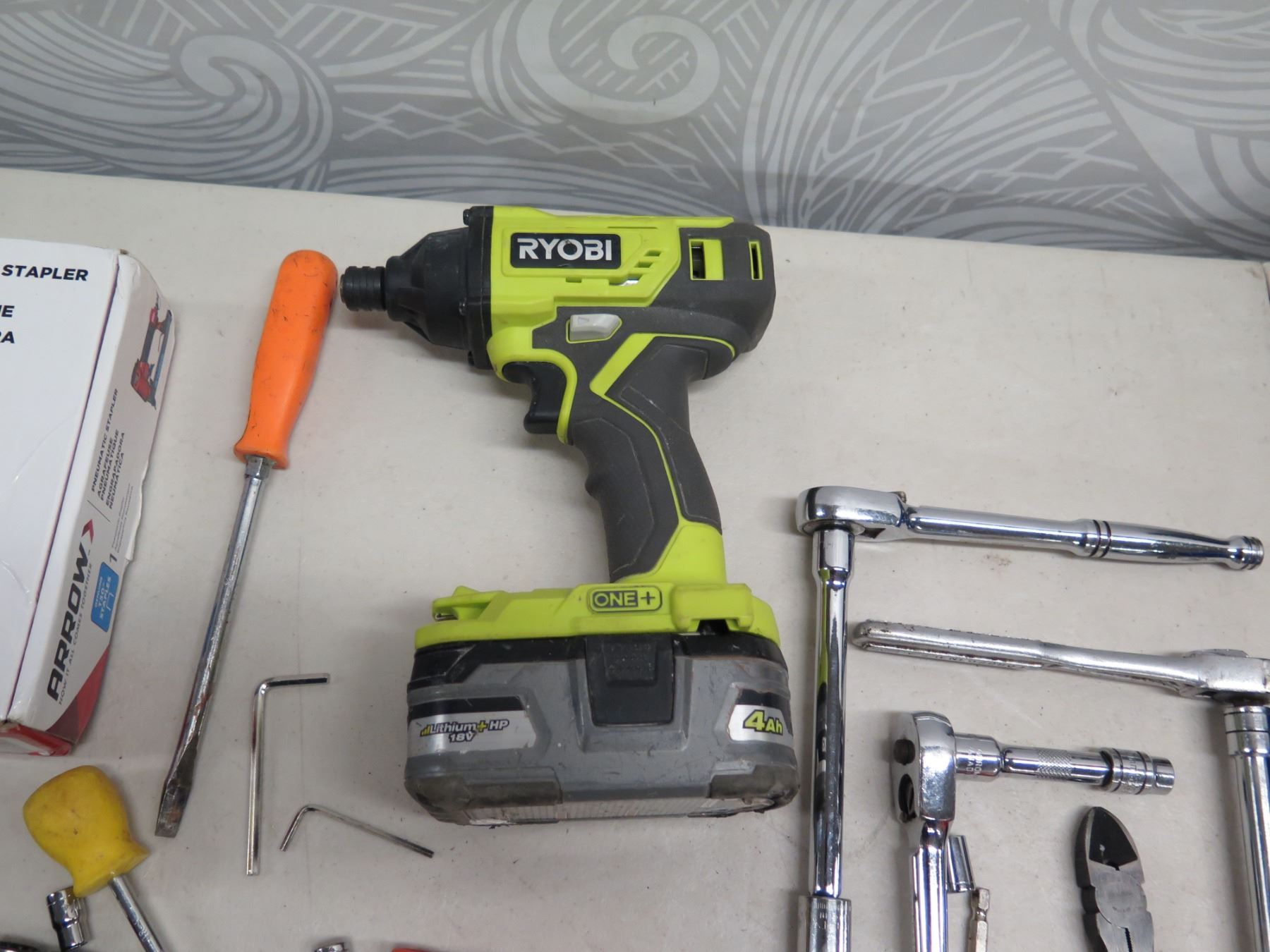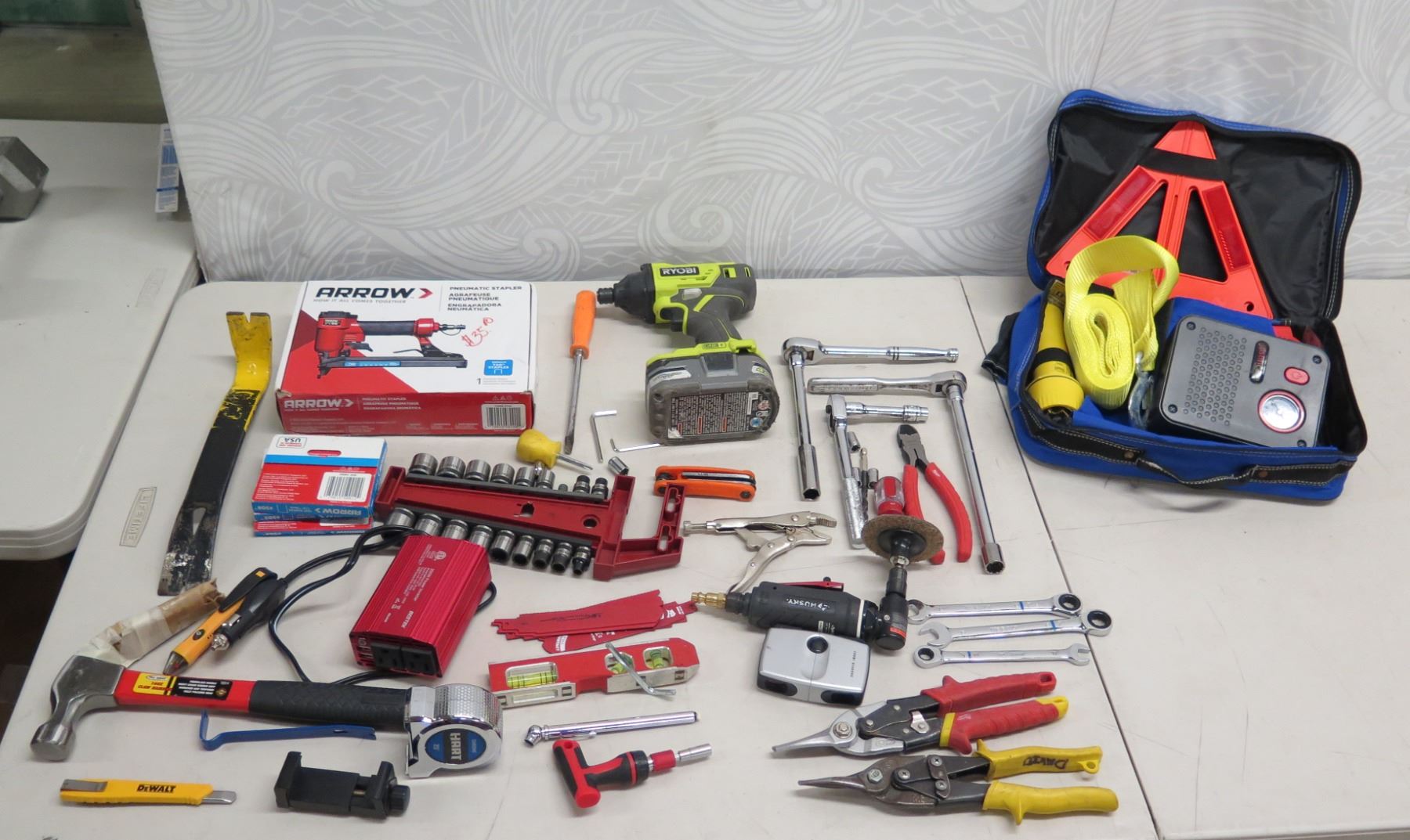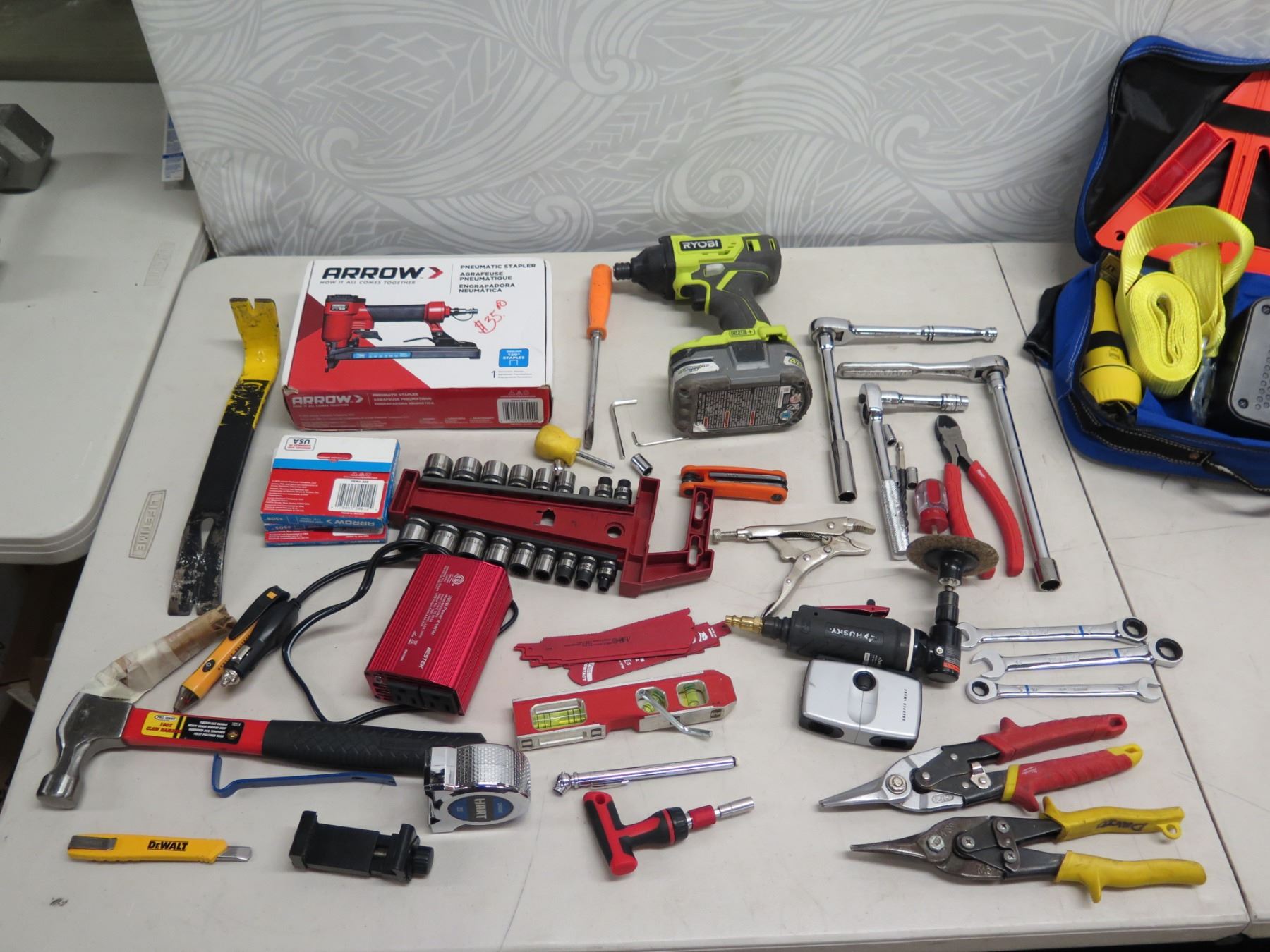 Misc Hand Tools, Arrow Pneumatic Stapler, Ryobi Power Tool, Just In Case Auto Safety Kit, etc