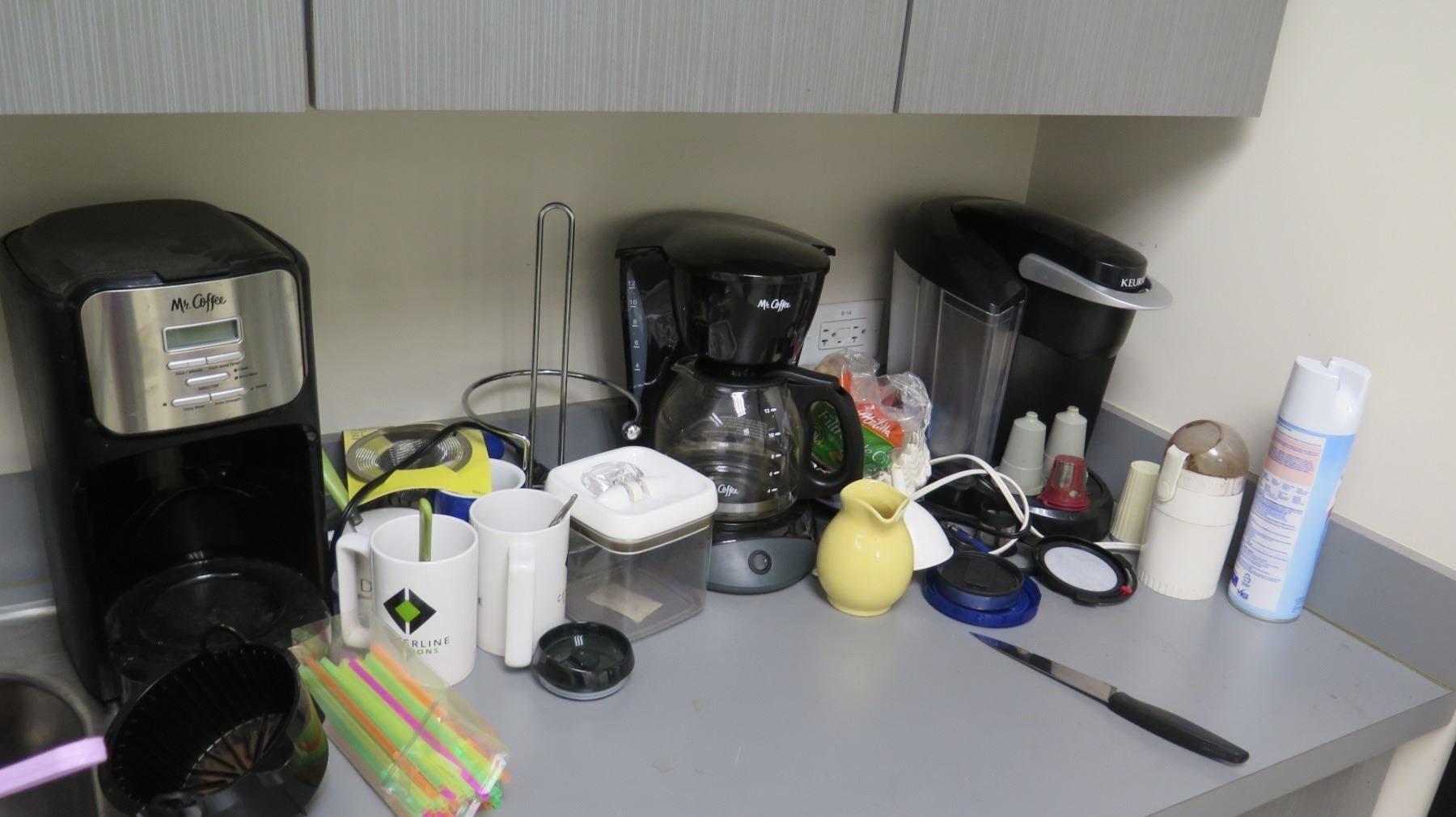 Misc Kitchen Supplies - Microwave, Coffee Makers, Cups, Condiment Containers, etc