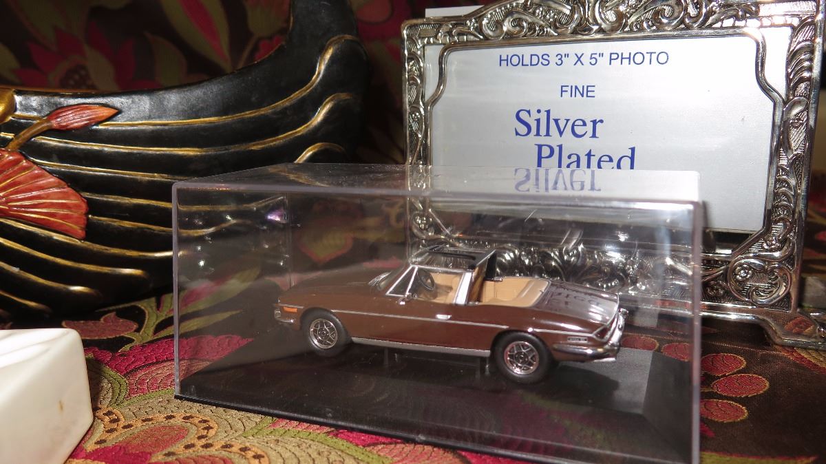Misc. Lot: Miniature Collectible Car, Silver Plated Photo Album, Harvard Ceramic Ashtray, Chinese Ba