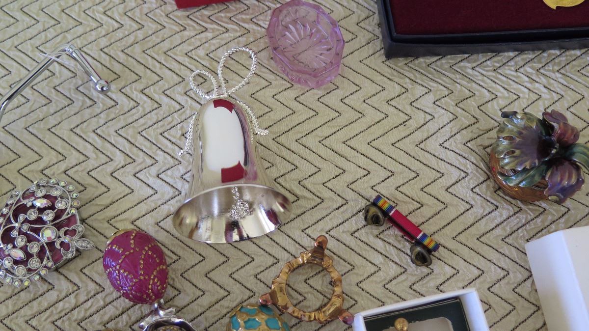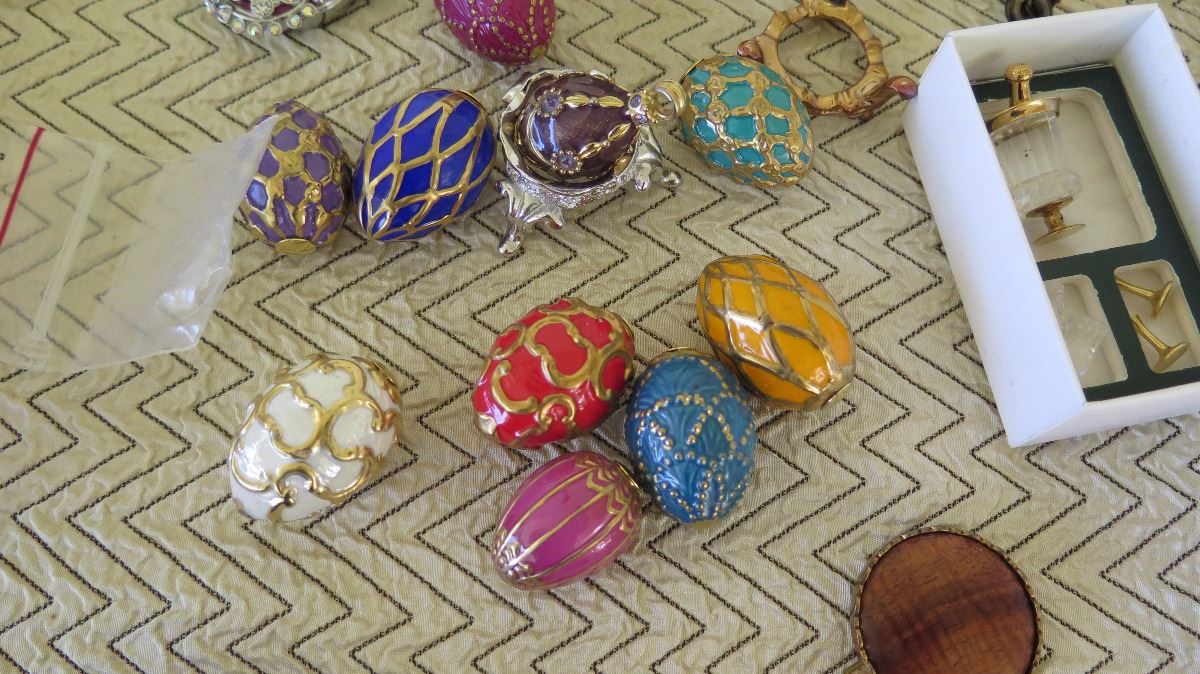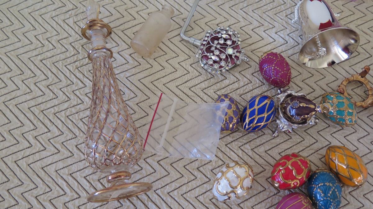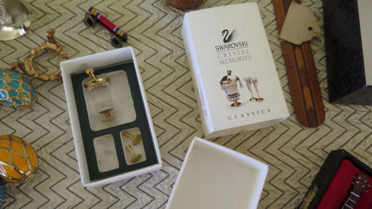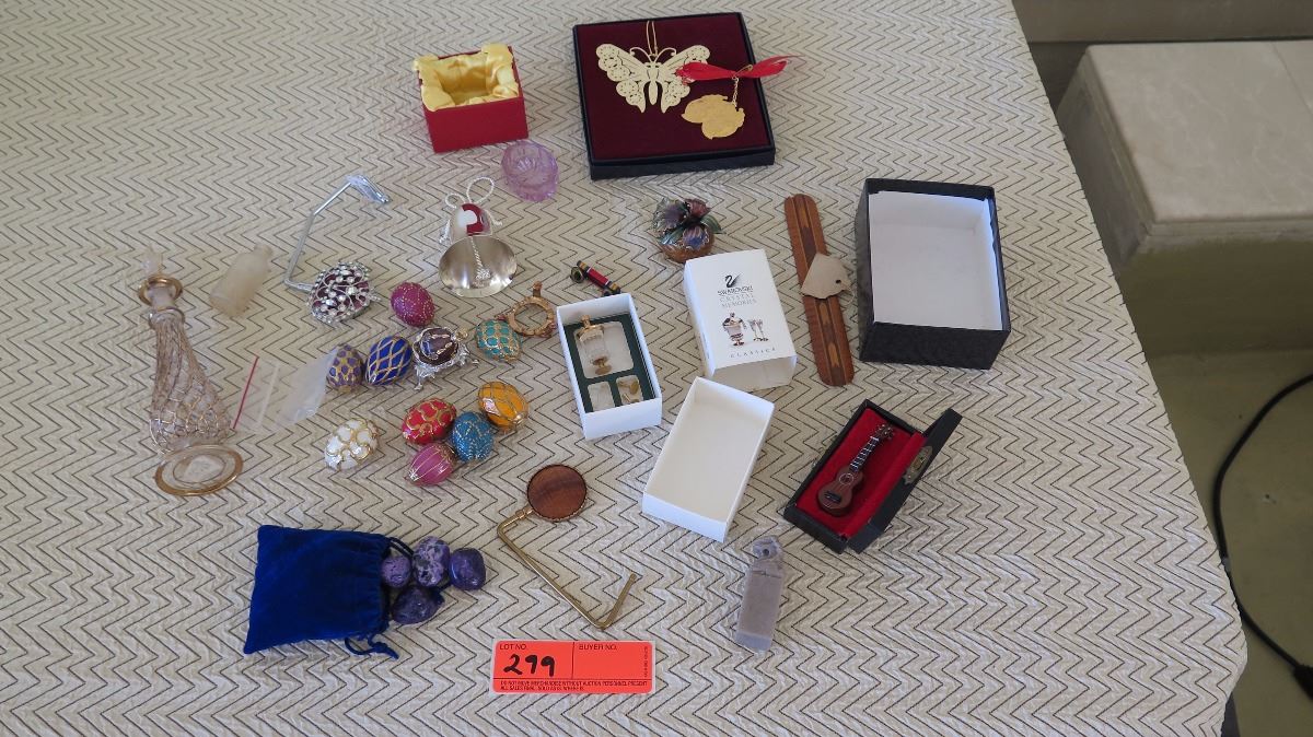 Misc. Miniature Enameled Eggs, Vera Wang Bell, Swarovski Miniature Champagne Bucket, etc.