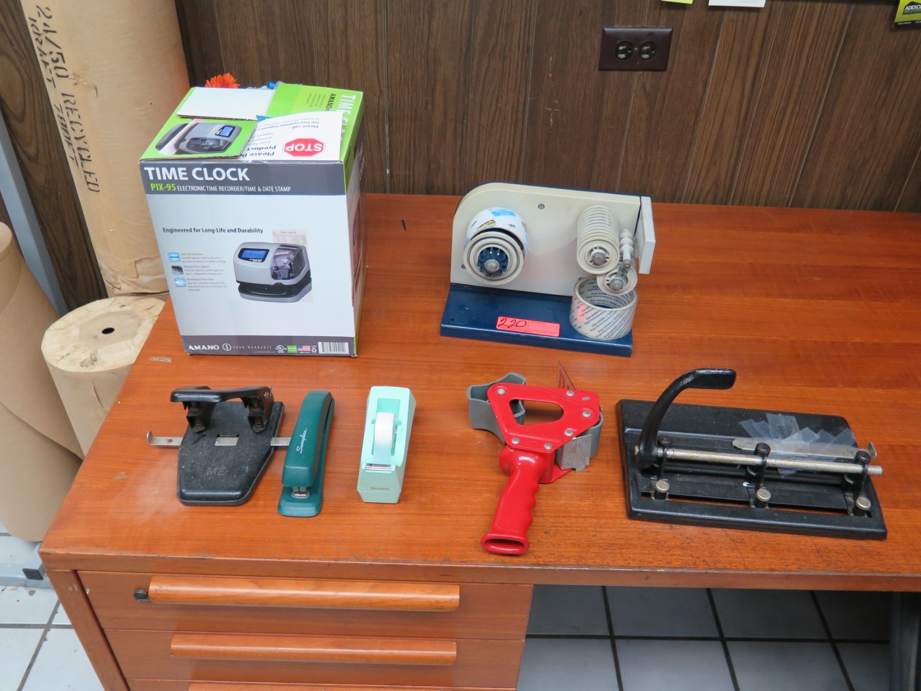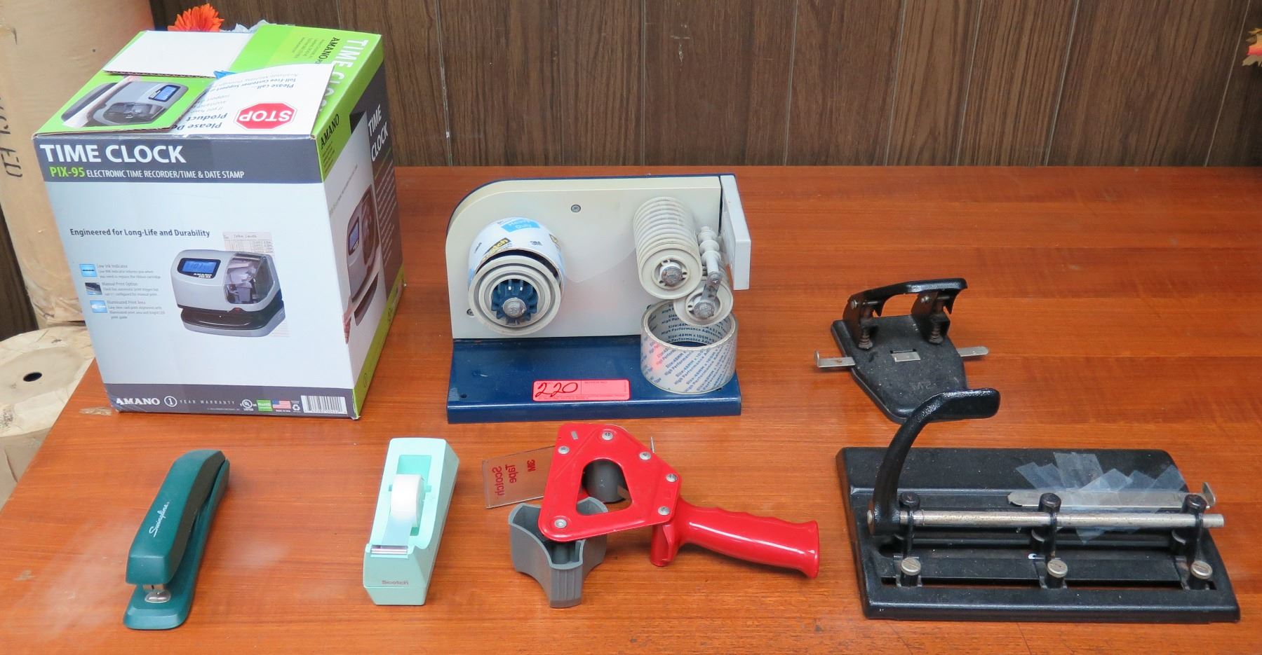 Misc Office Supplies: Time Clock, Hole Punch, Tape Dispensers, etc