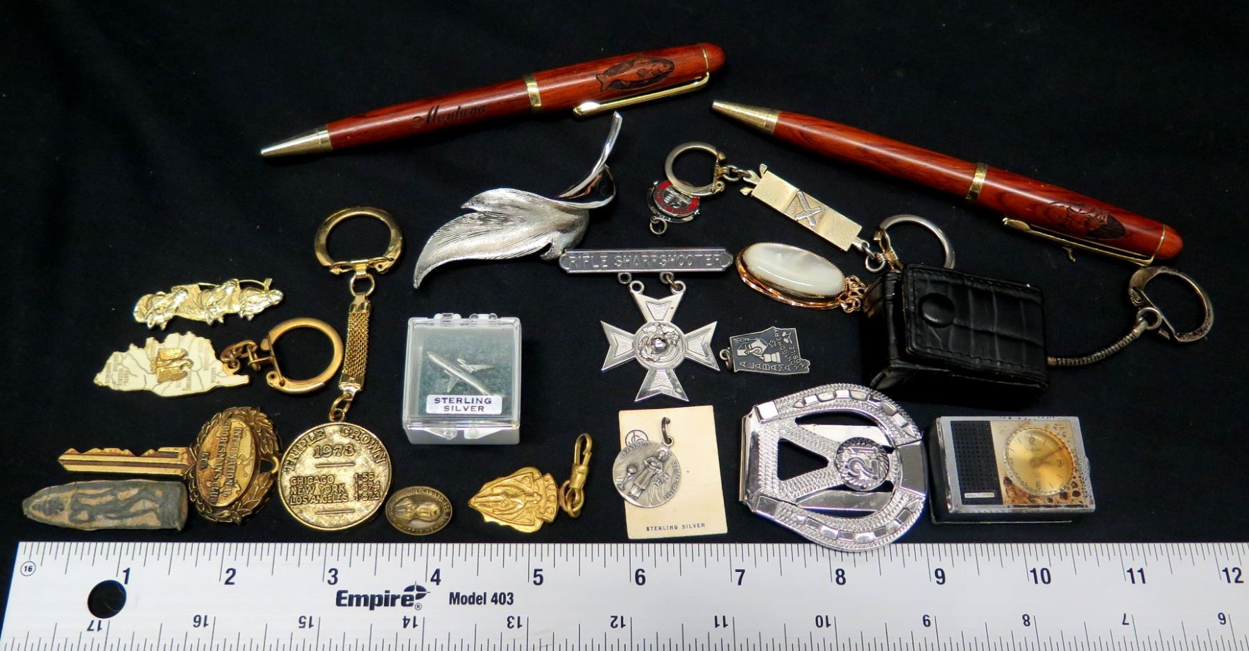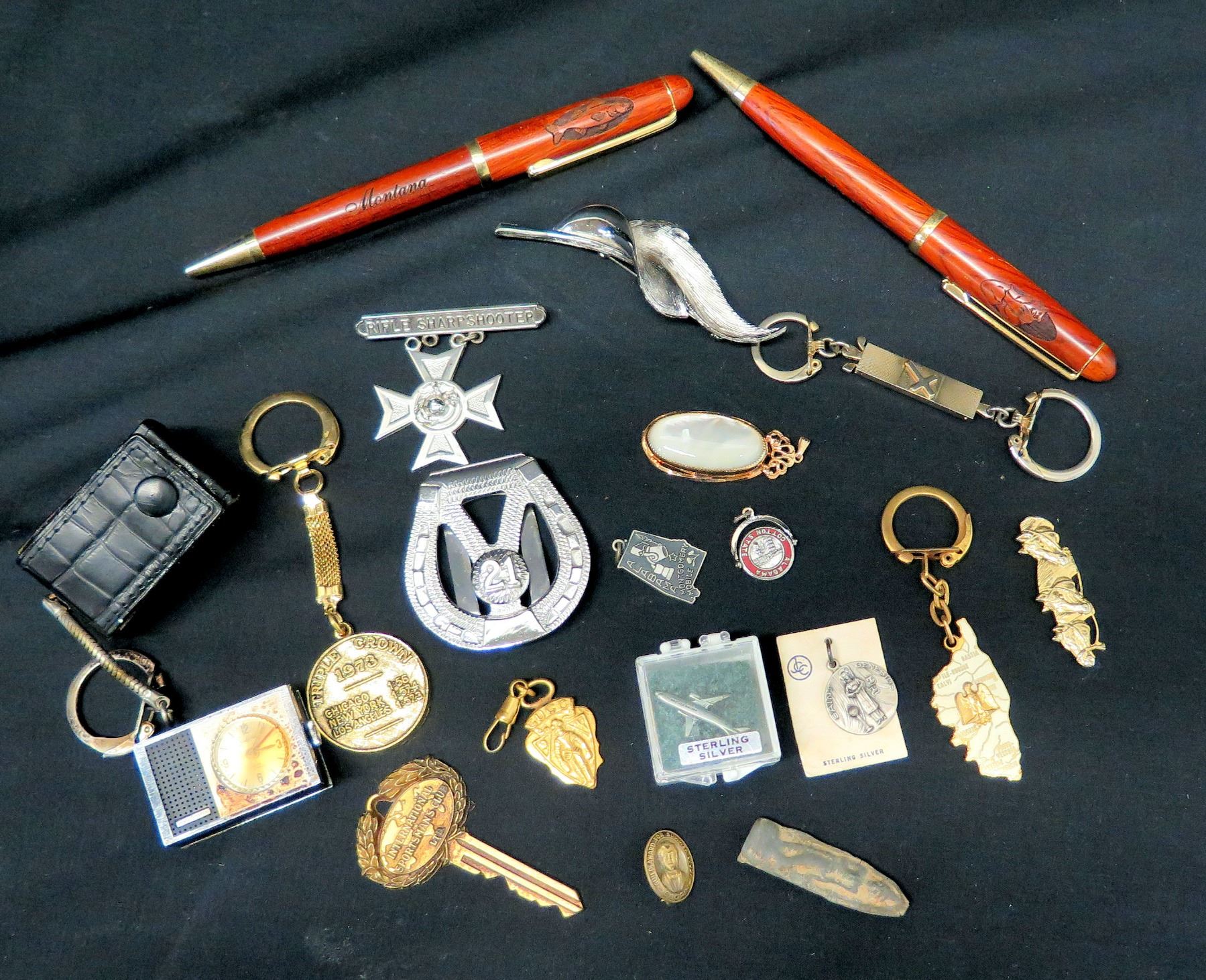 Misc. Pens, Pendants, Keychains, Sterling Silver Plane & Memorabilia