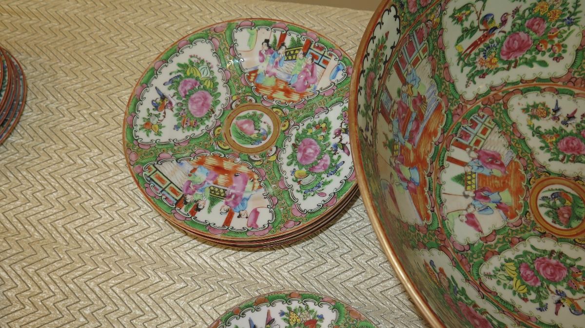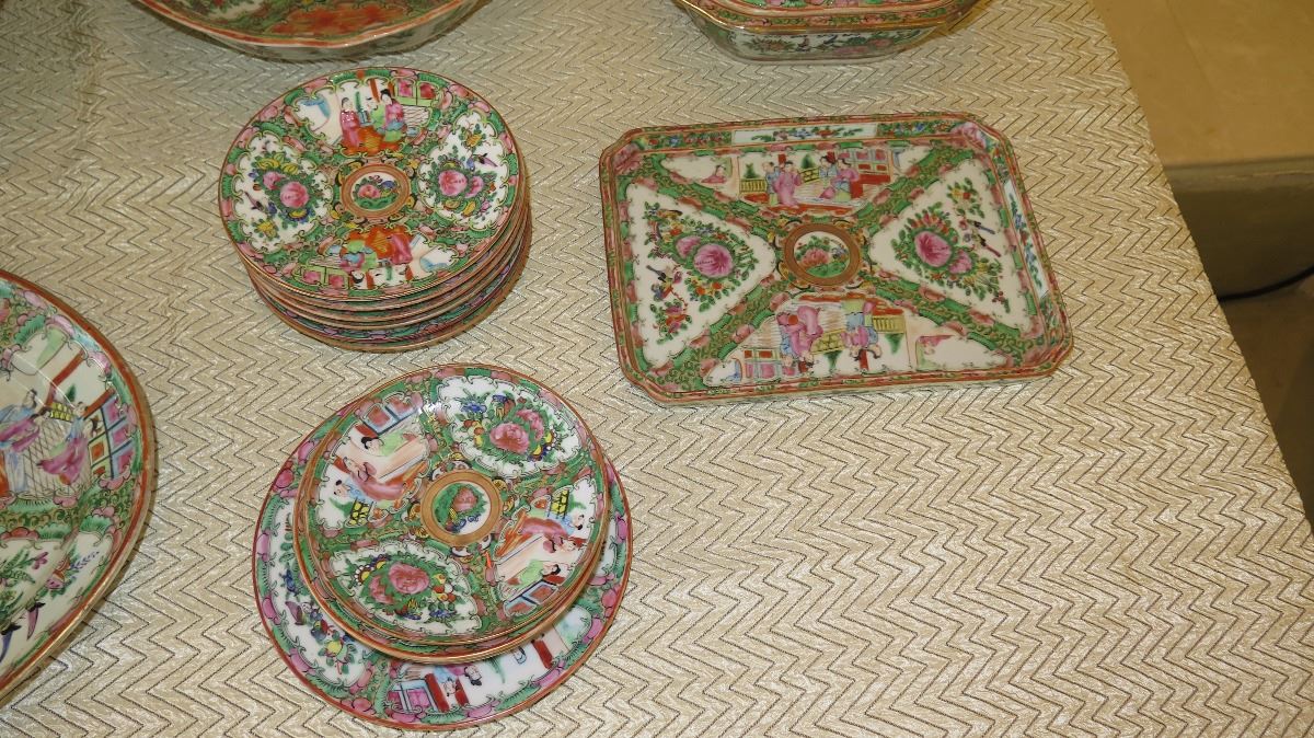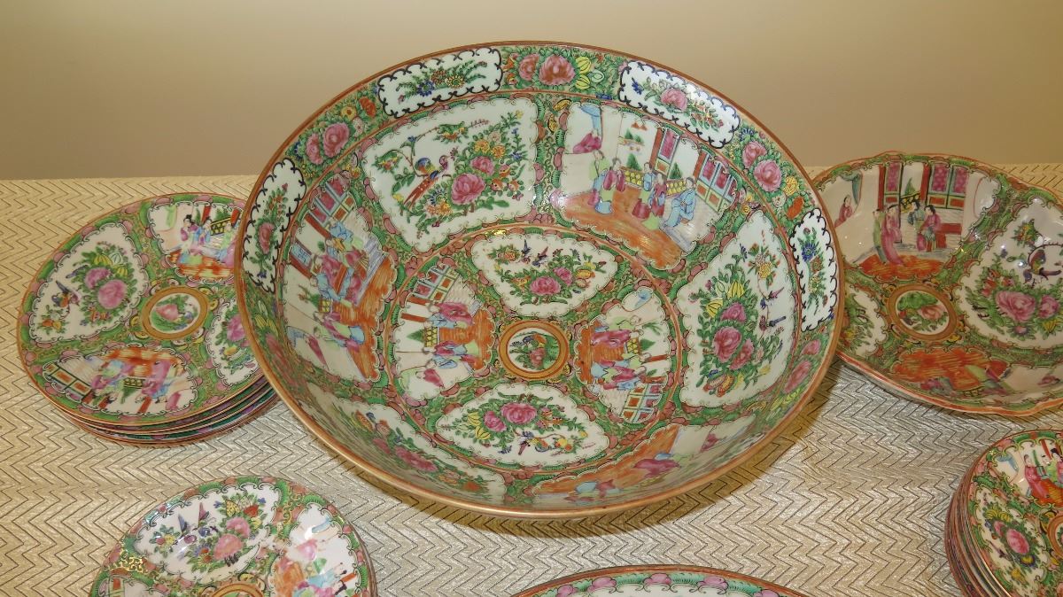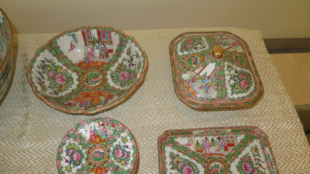 Misc. Rose Medallion Server Bowls, Tray, Platter, Plates, Bowls