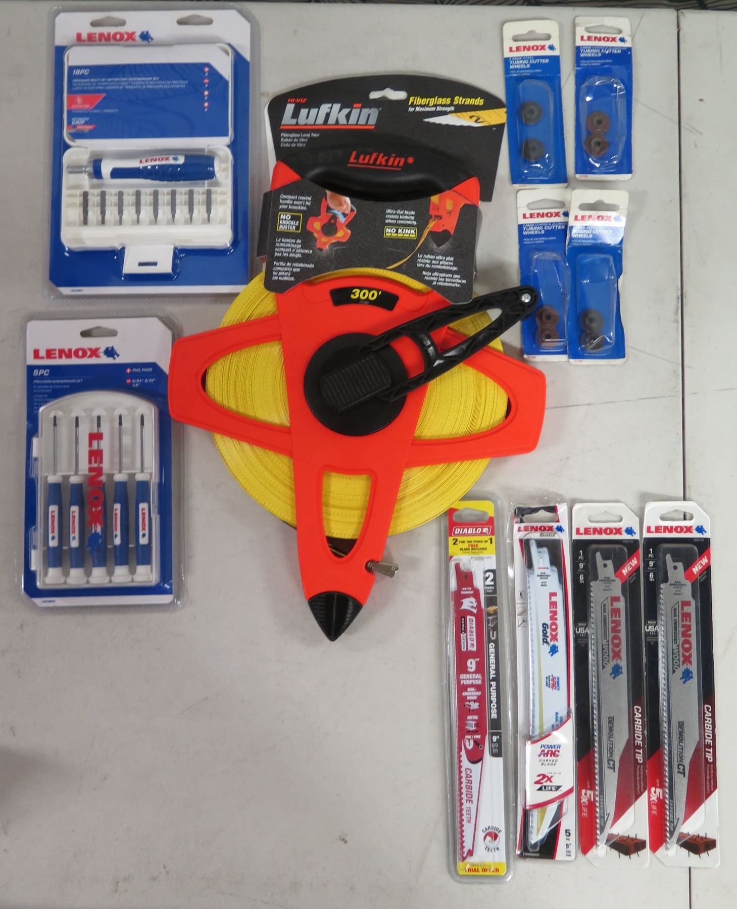 Misc Tools: Lufkin Fiberglass Tape, Lenox Cutter Wheels, Screwdriver & Multi Bit Set, etc
