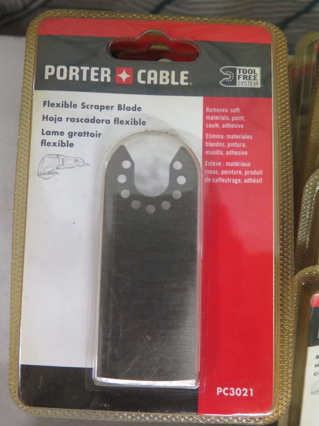 Misc Tools: Porter Cable Chisel Set, Scraper Blades, Carbide Rasp, Plunge Cut Blade, etc