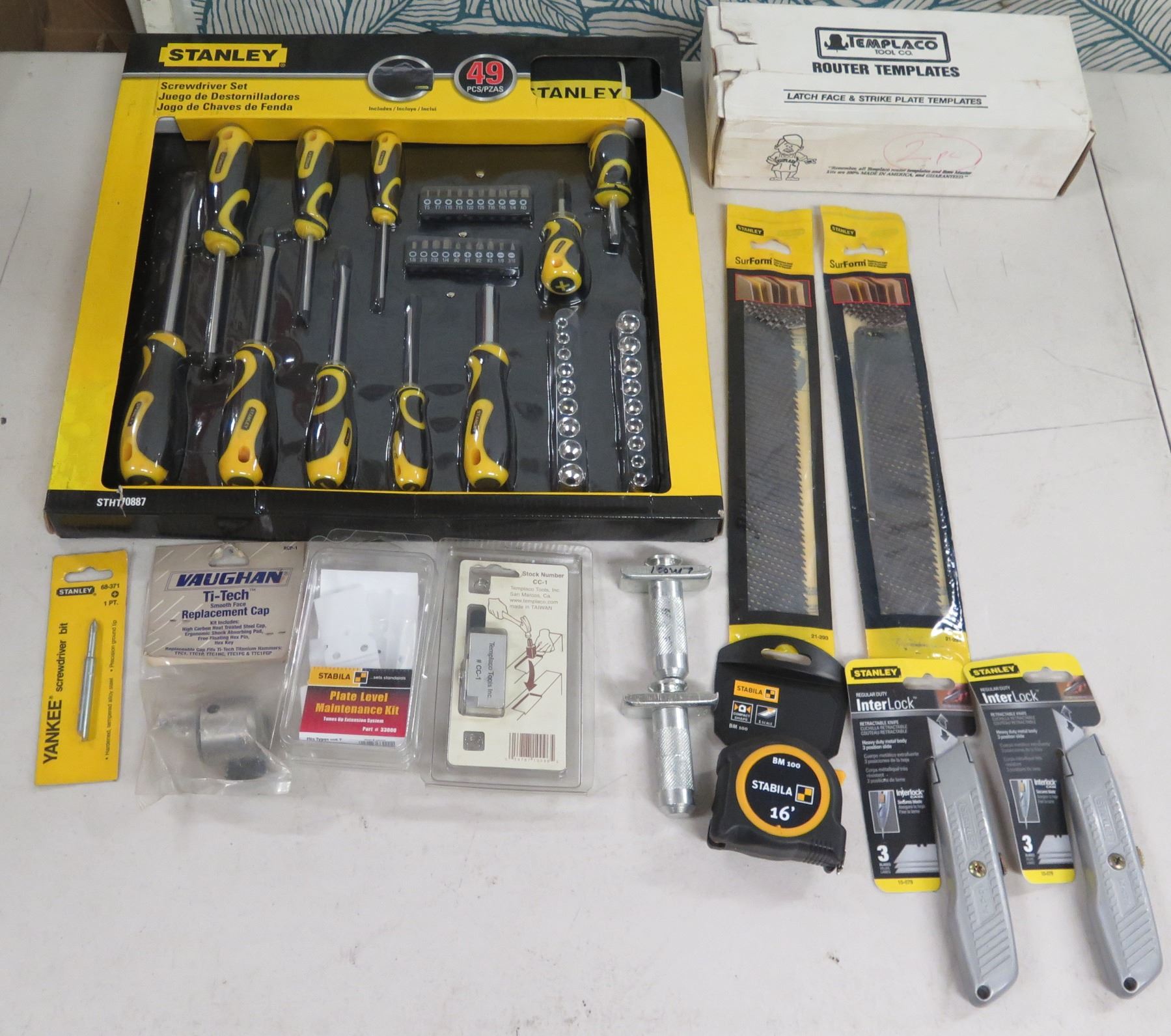 Misc Tools: Stanley STH70887 Screwdriver Set, InterLock, Templaco Router Templates, Stabila Kit, etc