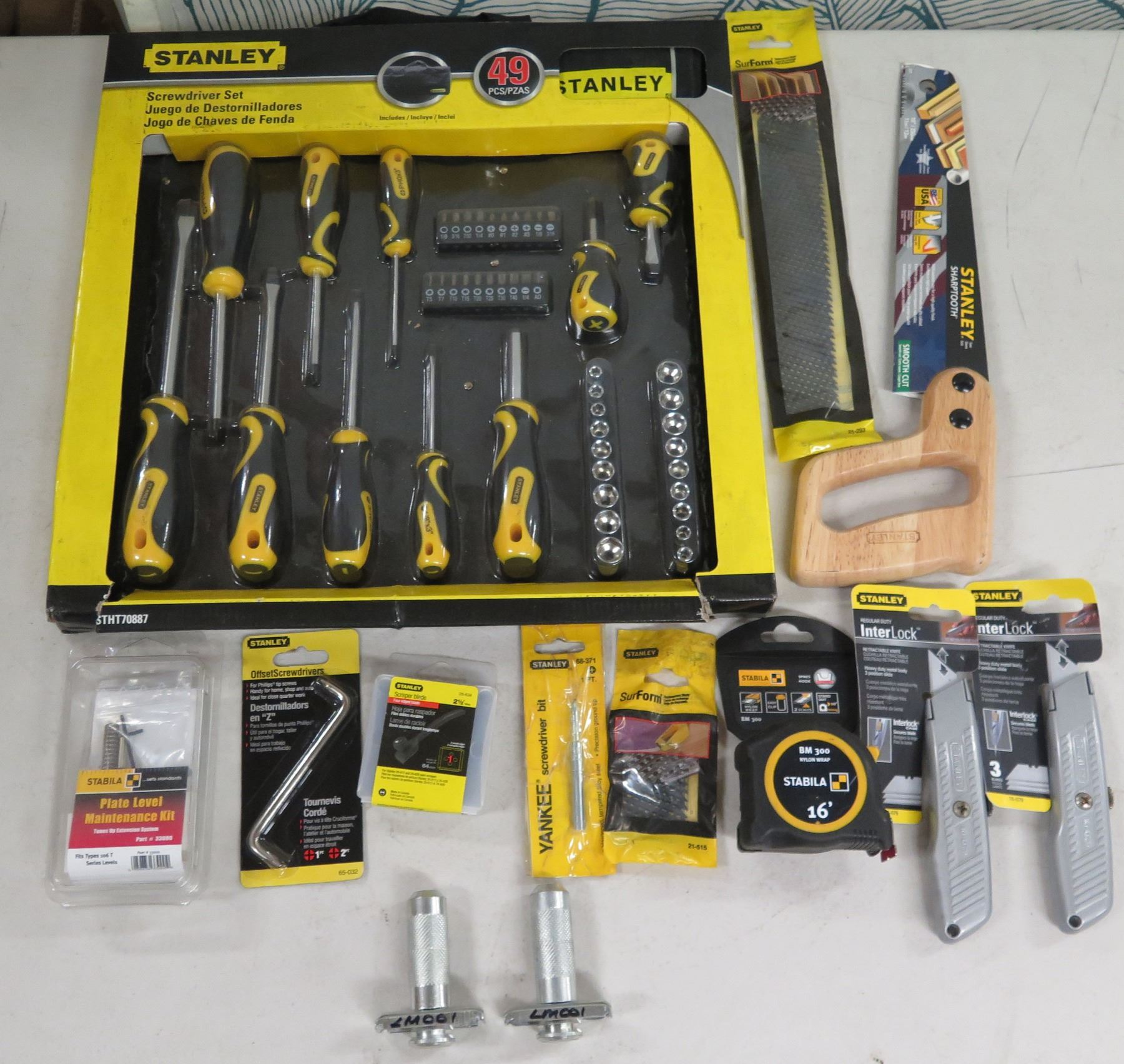 Misc Tools: Stanley STH70887 Screwdriver Set, Saw, InterLock, Measuring Tape, Stabila Kit, etc