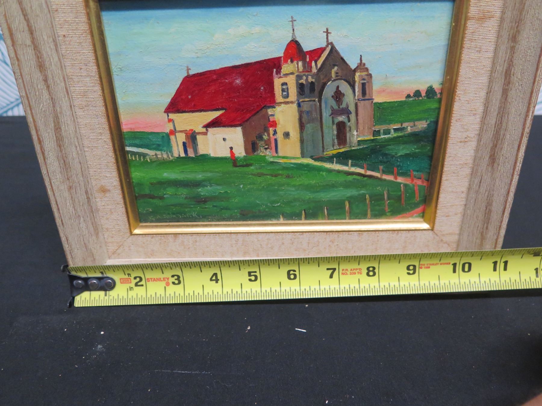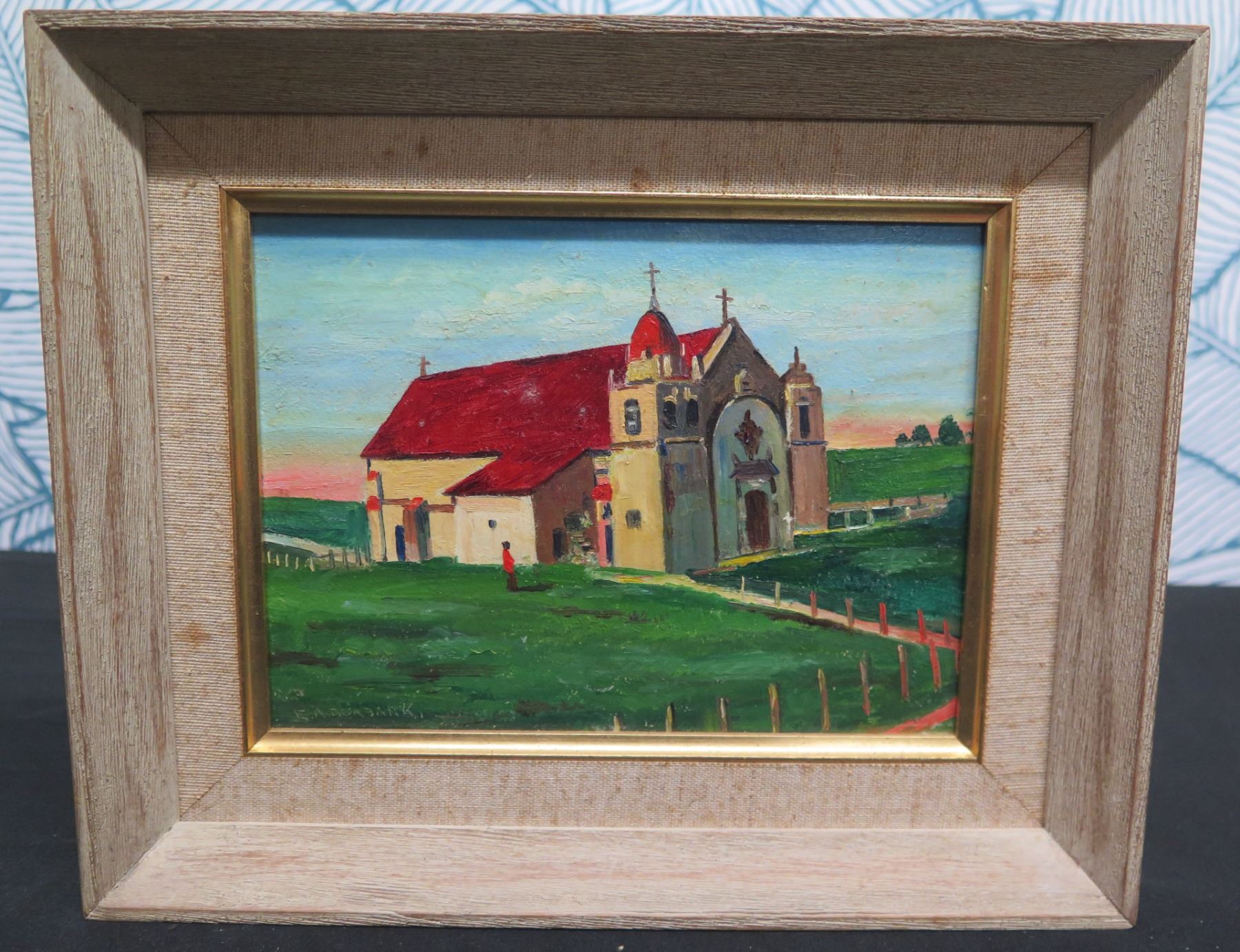 Mission San Carlos Carmel CA Oil Painting by E.A. Burbank, Framed & Matted 11"x9"