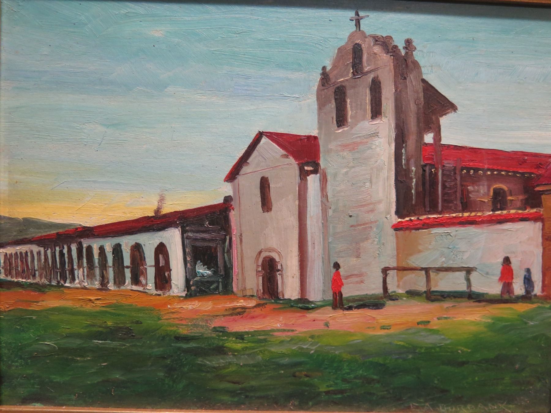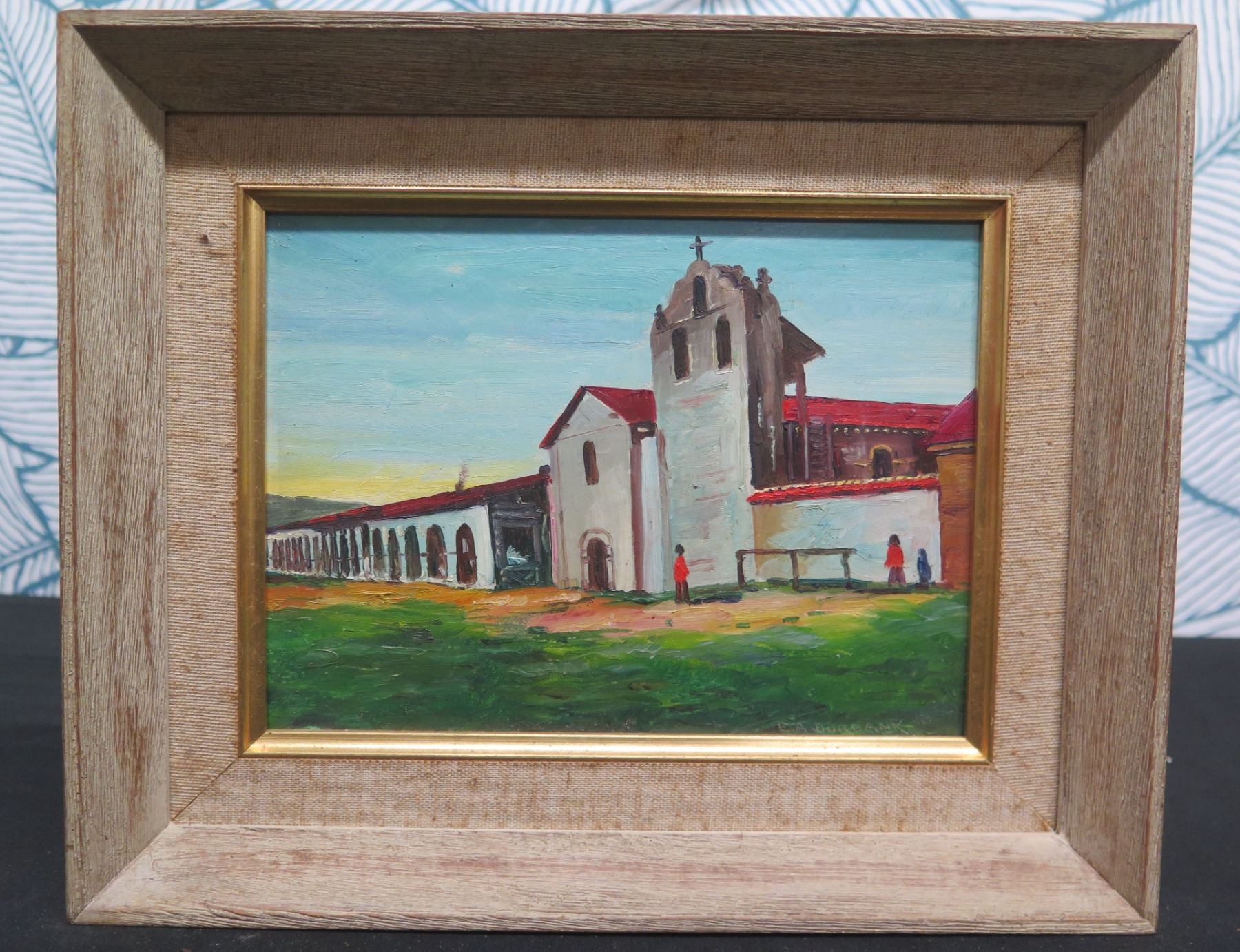 Mission Santa Ines Oil Painting by E.A. Burbank, Framed & Matted 11"x9"