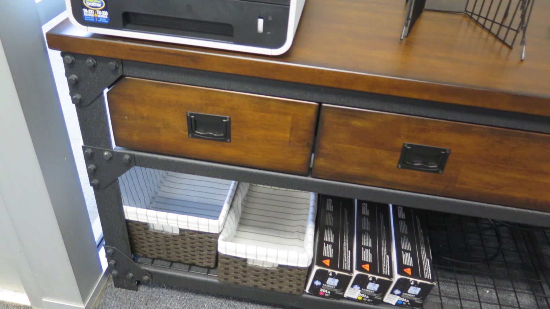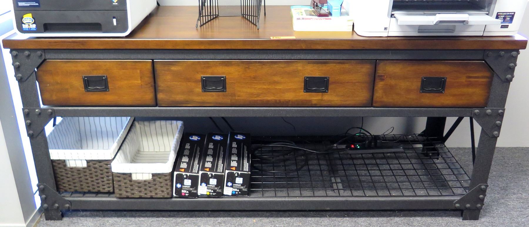 Modern Metal & Wood Console Table 3 Drawers & Undershelf