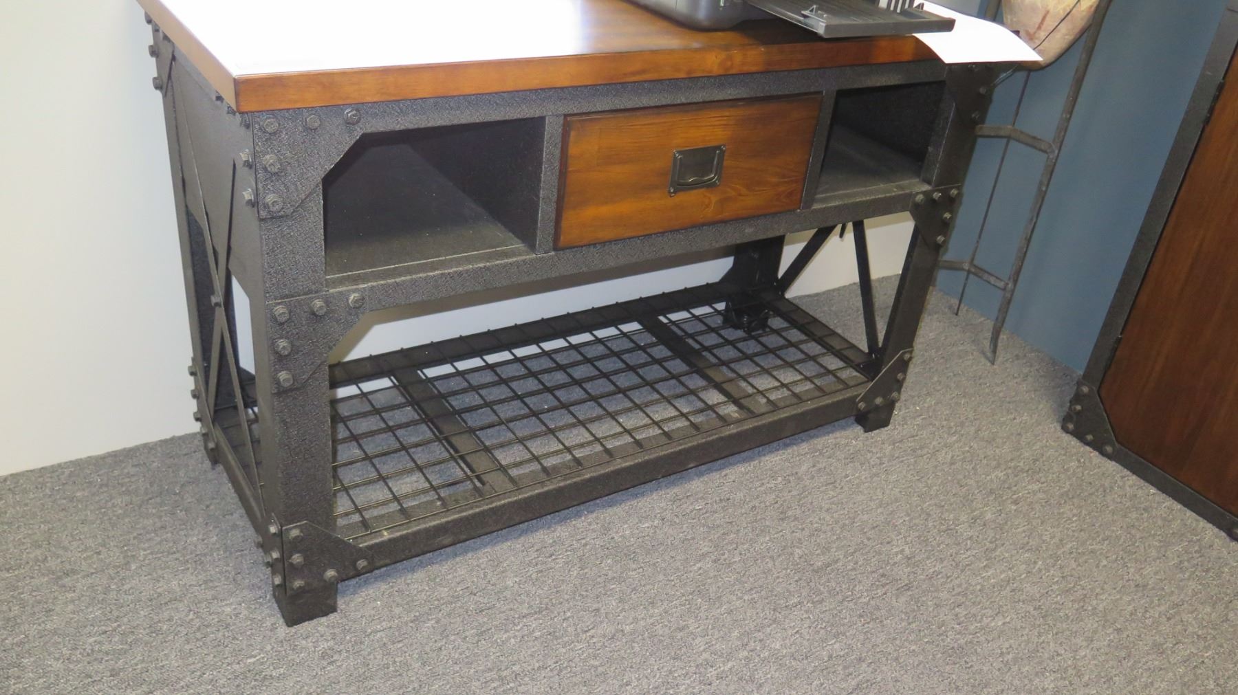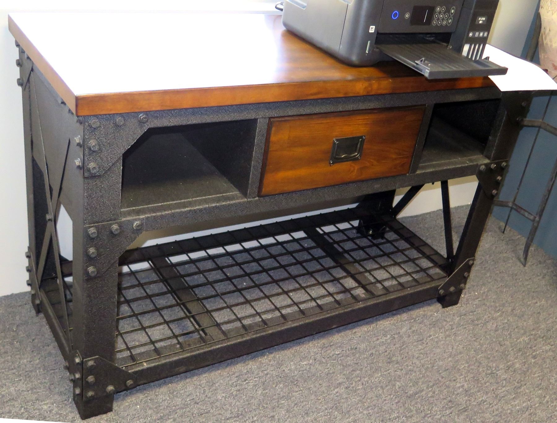 Modern Metal & Wood Table w/ Drawer & Undershelf