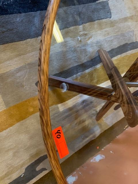 Modern Round Tripod Wood & Glass Dining Table, 56” Dia, 31”H