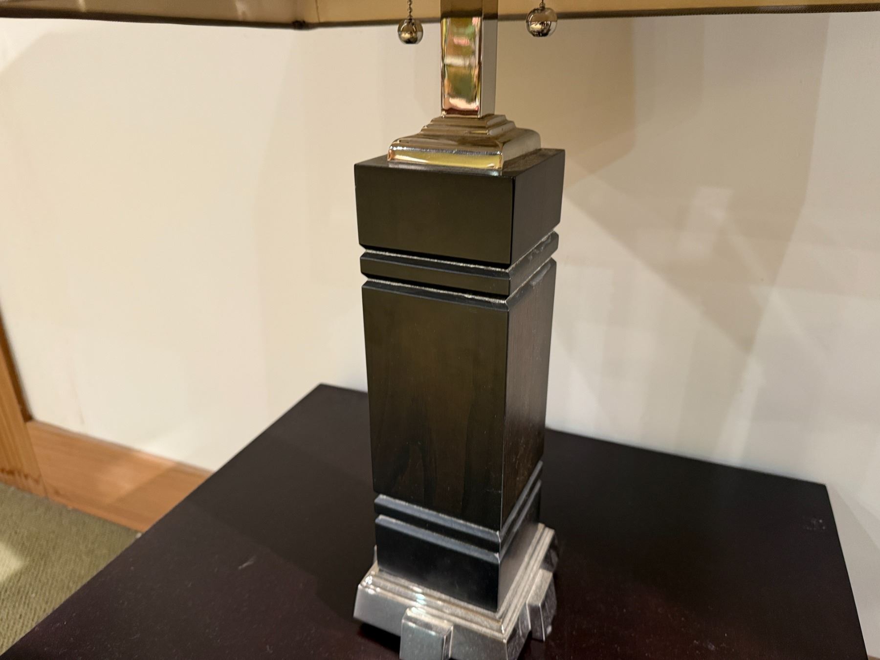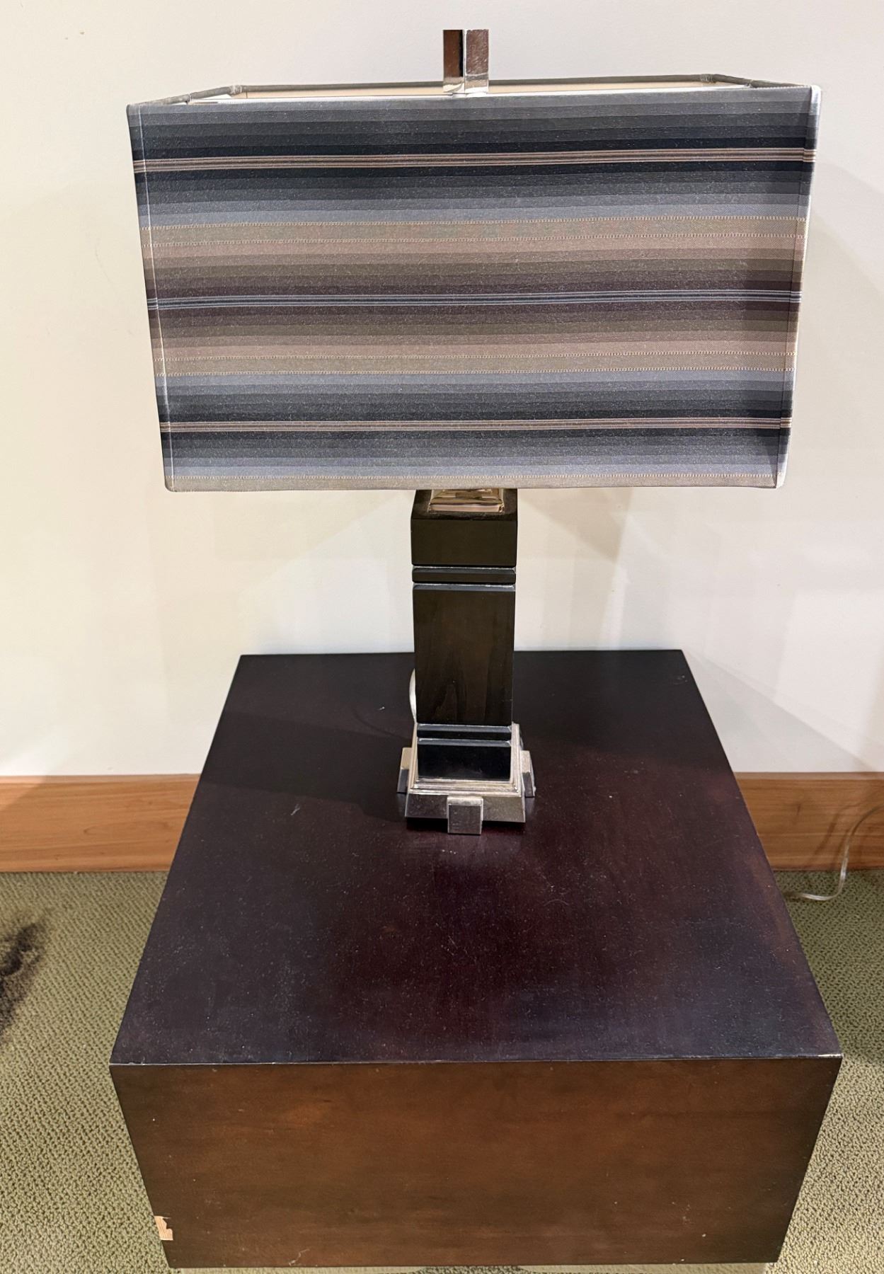 Modern Table Lamp w/ Black Base & Striped Rectangular Shade 27"H