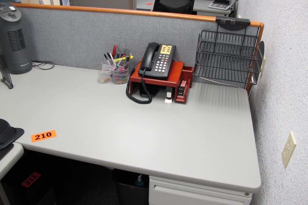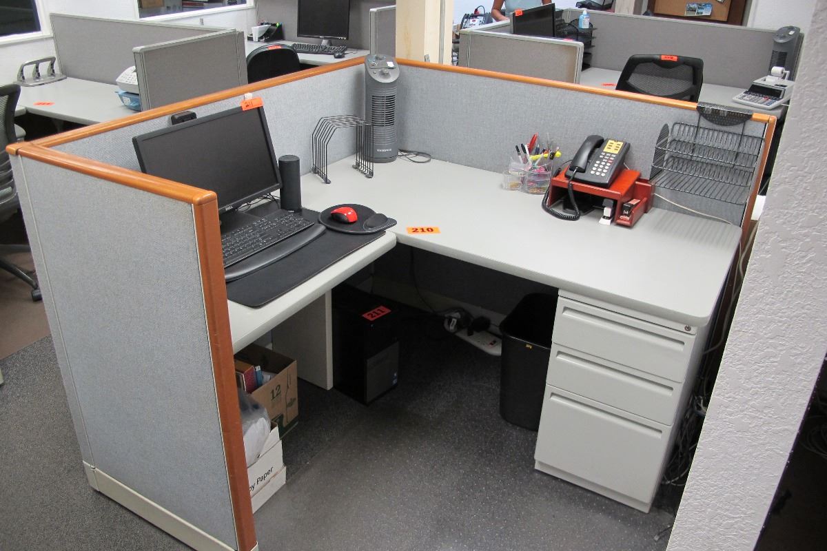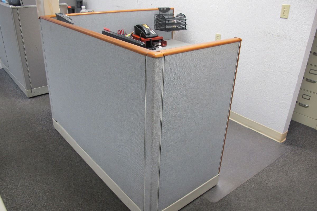Modular Workstation w/2-Piece Desk, Drawers & 3-Wall Cubicle Enclosure