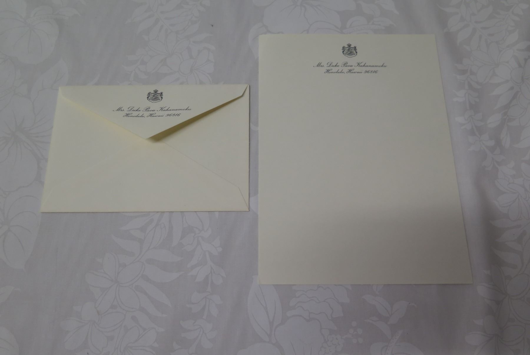 Mrs. Duke Paoa Kahanamoku Stationary Sheet & Envelope
