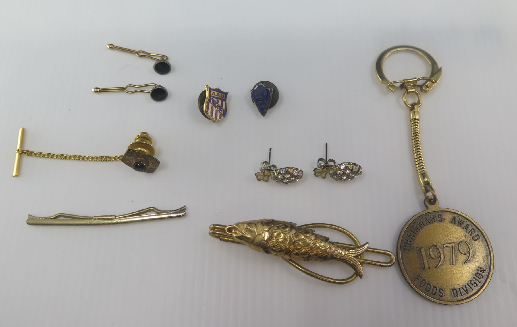 Multiple Accessories: Pins, Cuff Links, Tie Tacks & Bars, 1979 Key Chain, Earrings etc