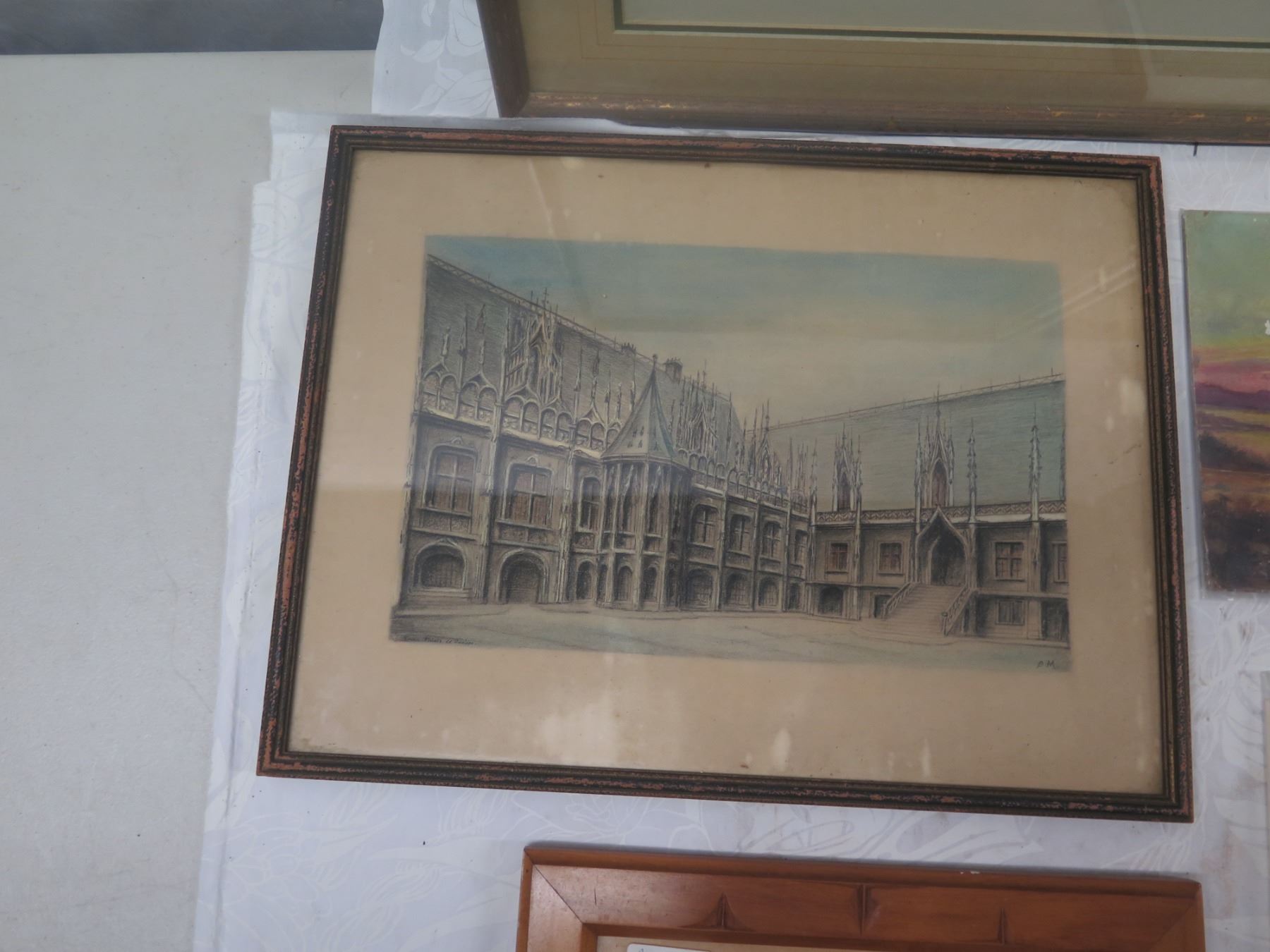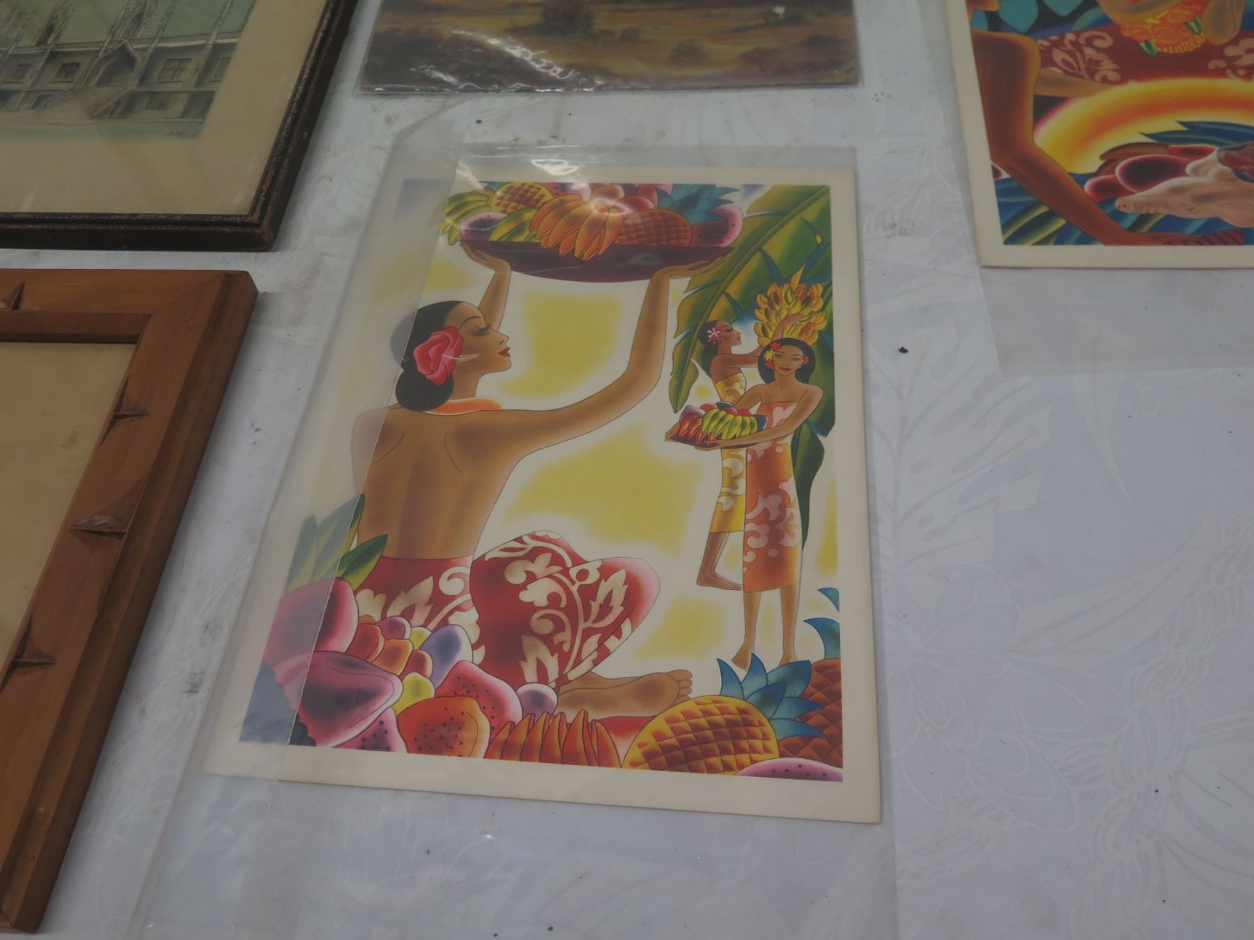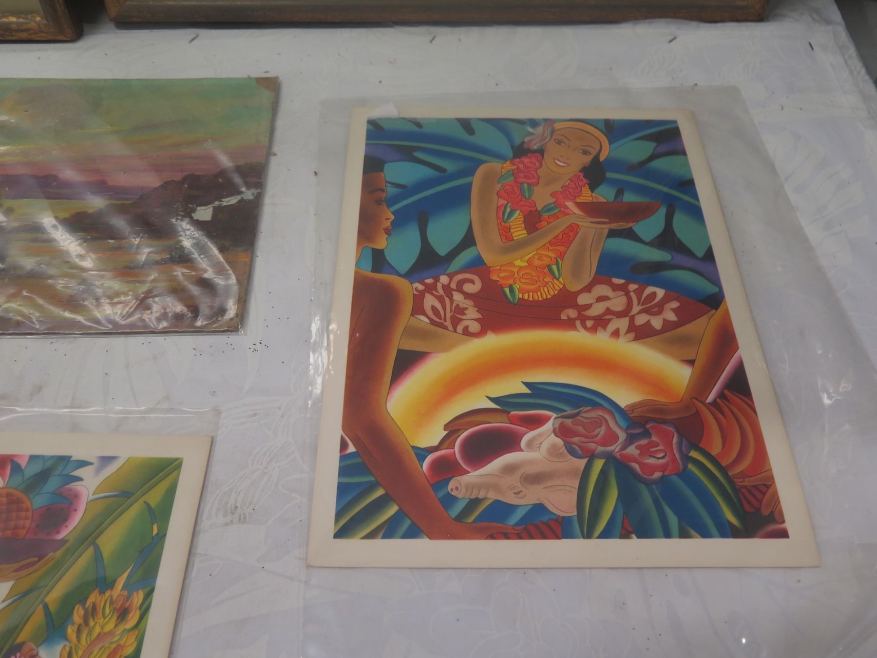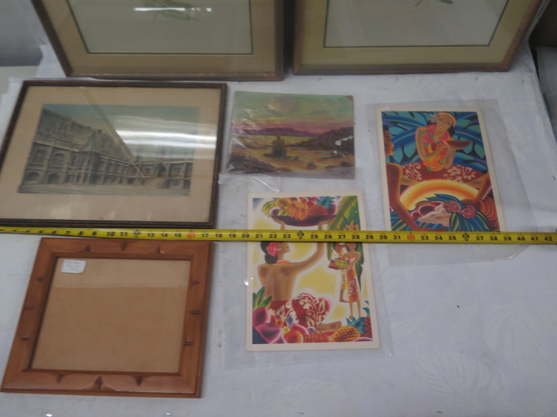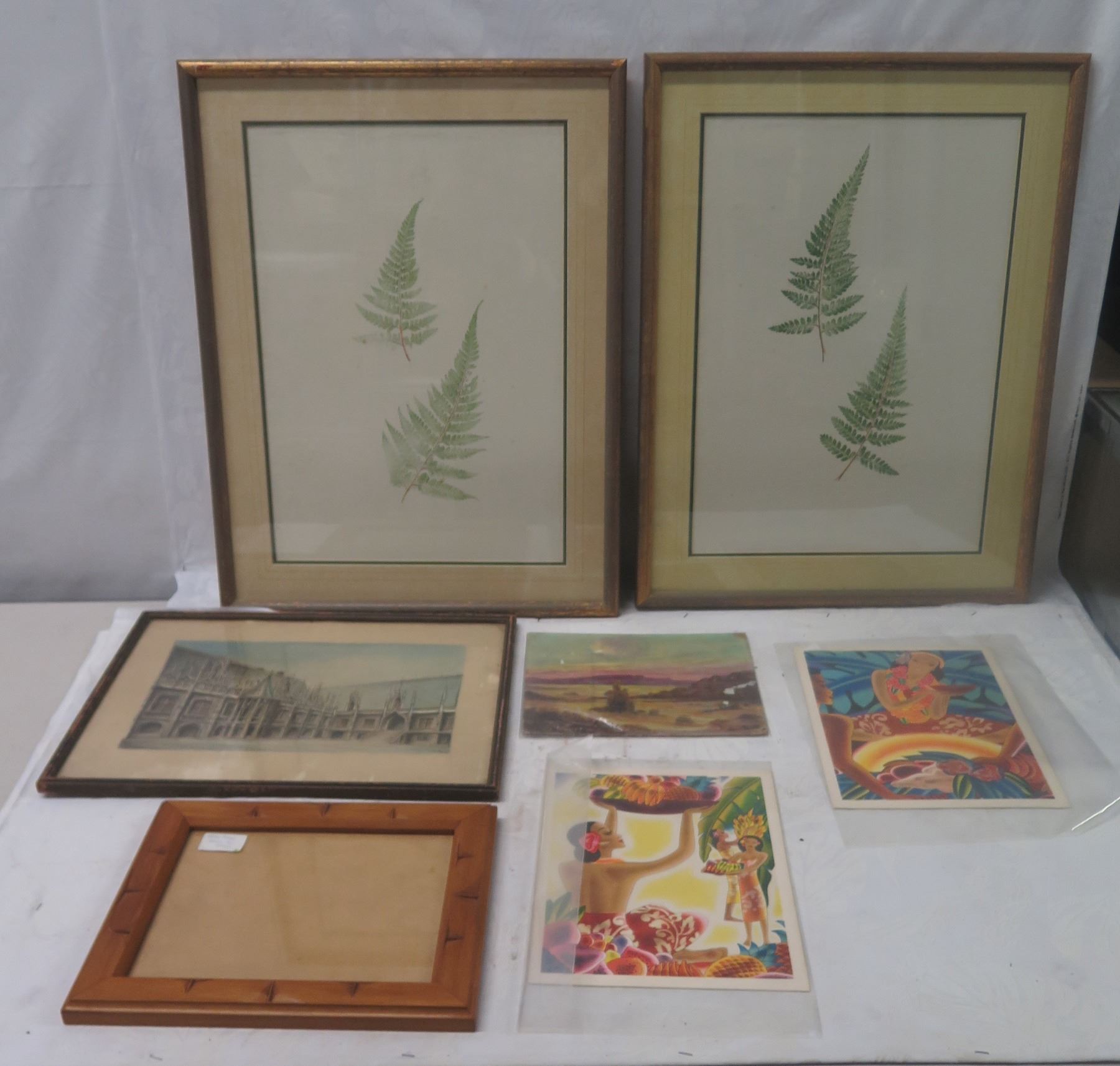 Multiple Artwork: Framed Leaf Prints, Street Scene, Menu Covers Unframed, etc Misc Sizes