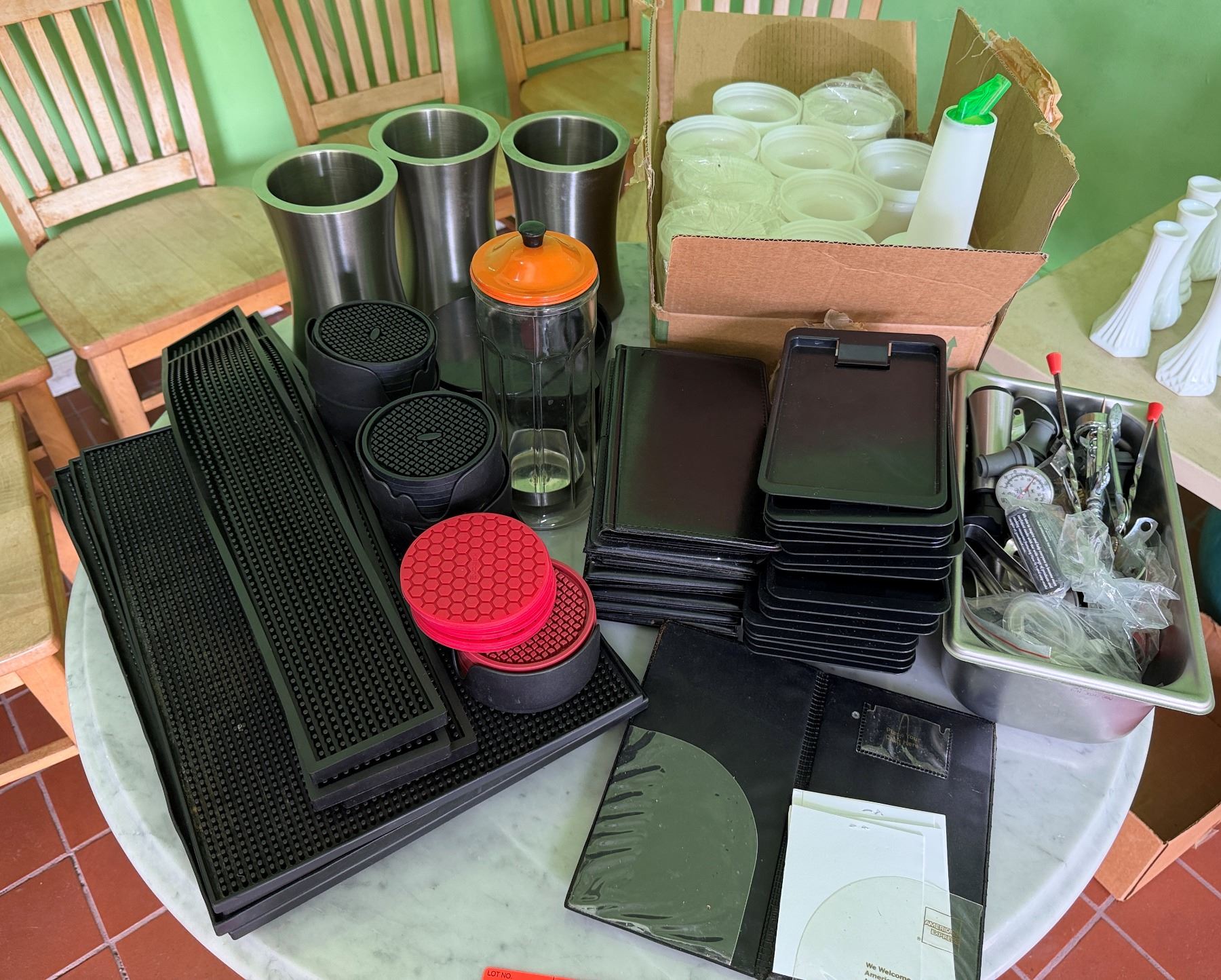 Multiple Barware: Bar Mats, Menu Holders, Coasters, Juice Containers, Utensils, etc