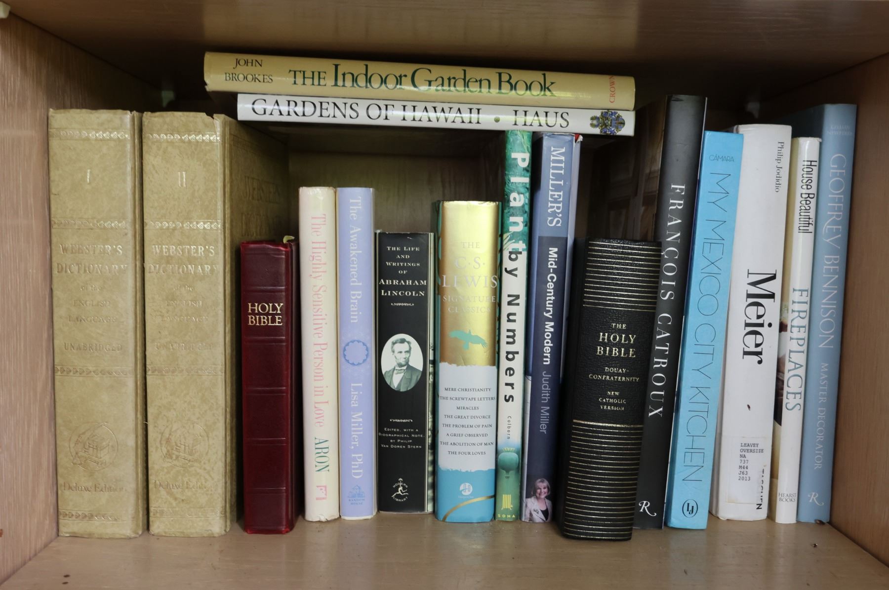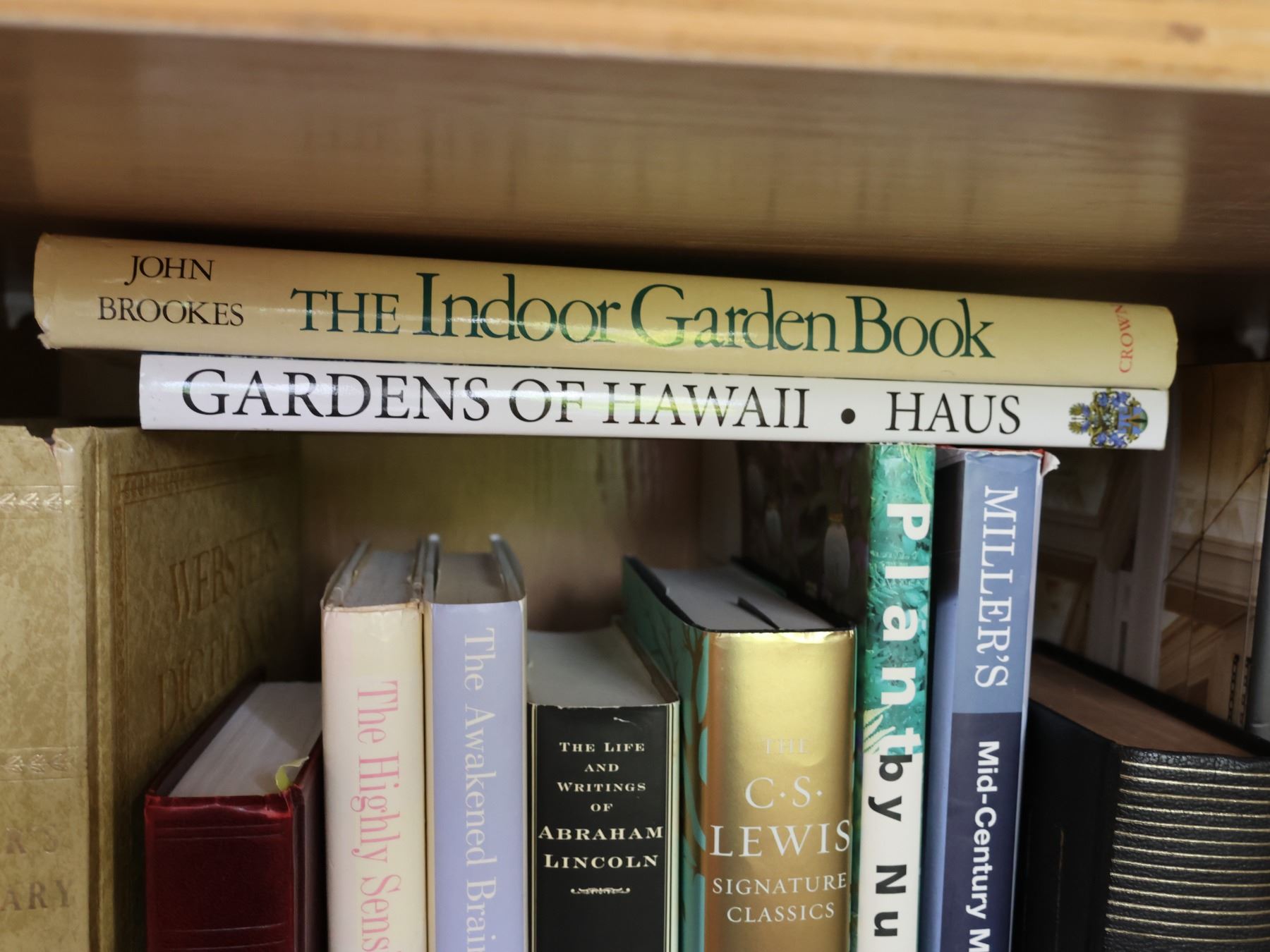 Multiple Books: Gardening, The Holy Bible, Webster's Dictionary, etc