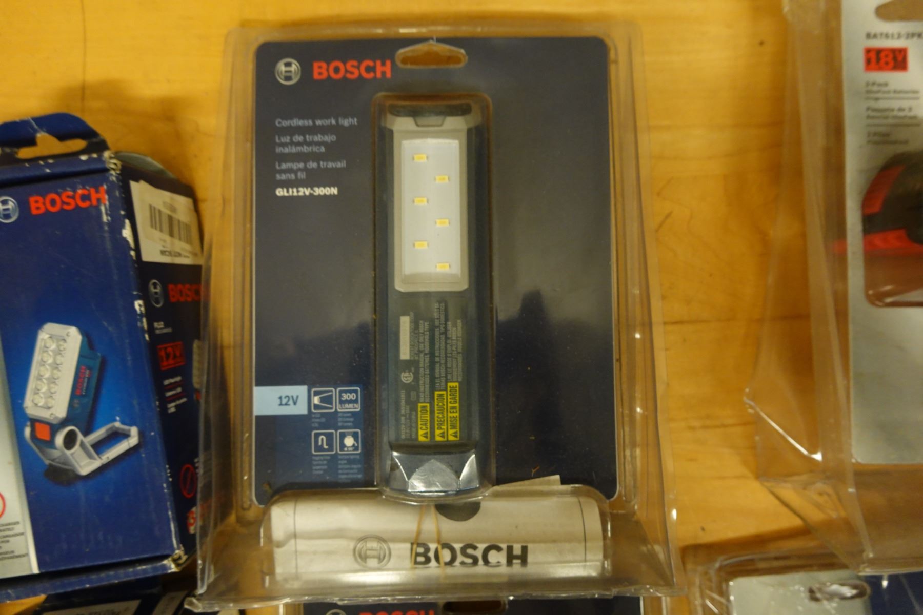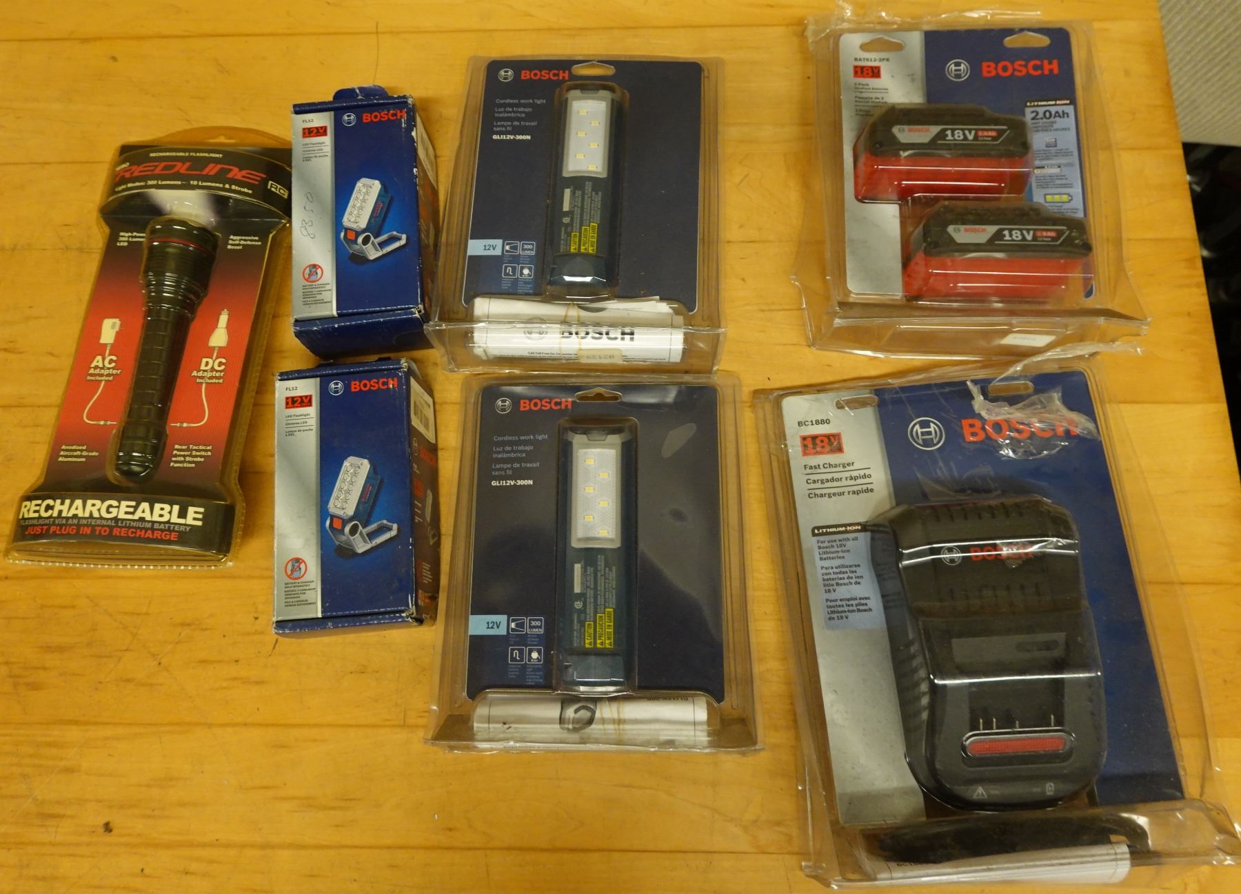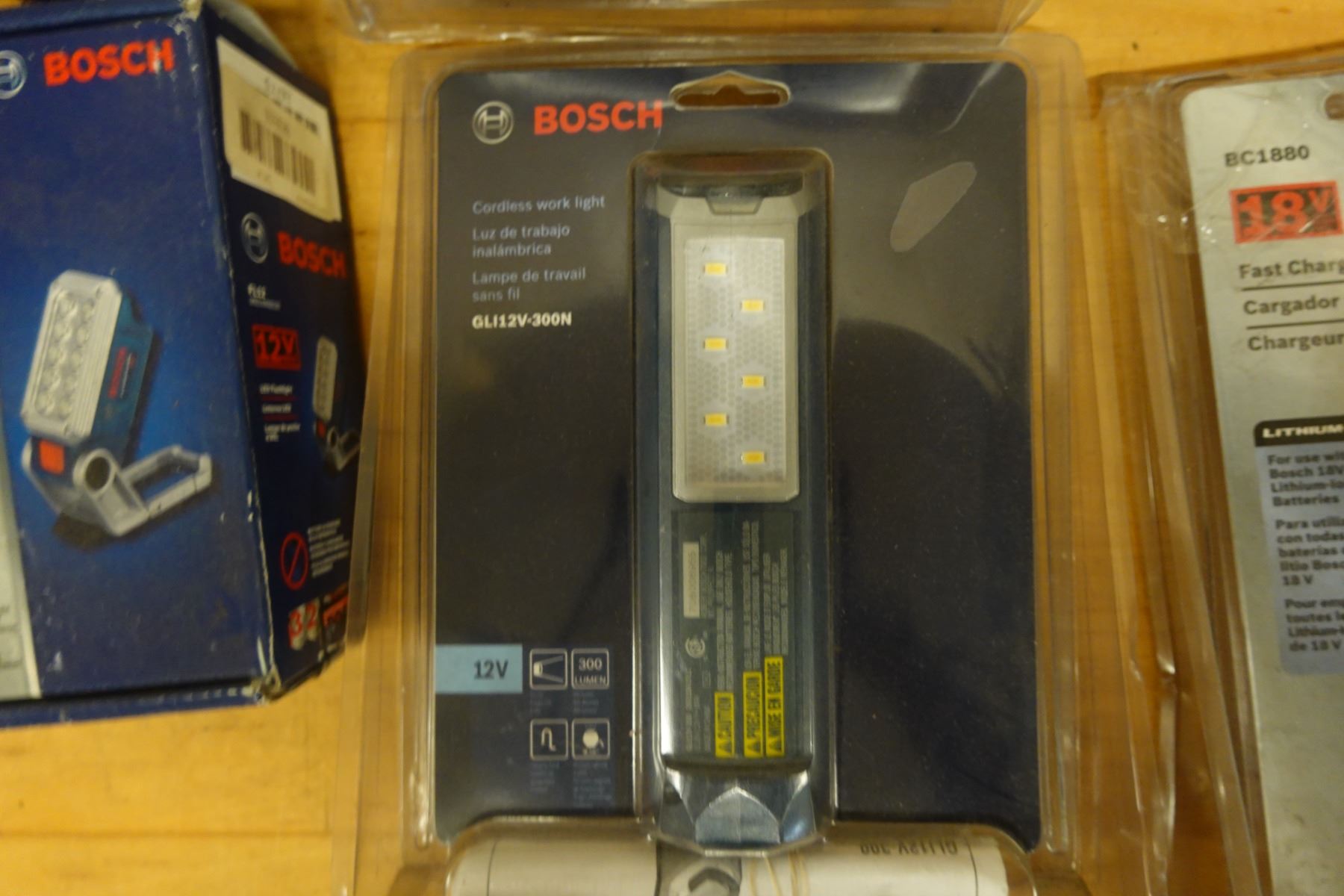 Multiple Bosch Cordless Work Lights, Batteries & Charging Accessories