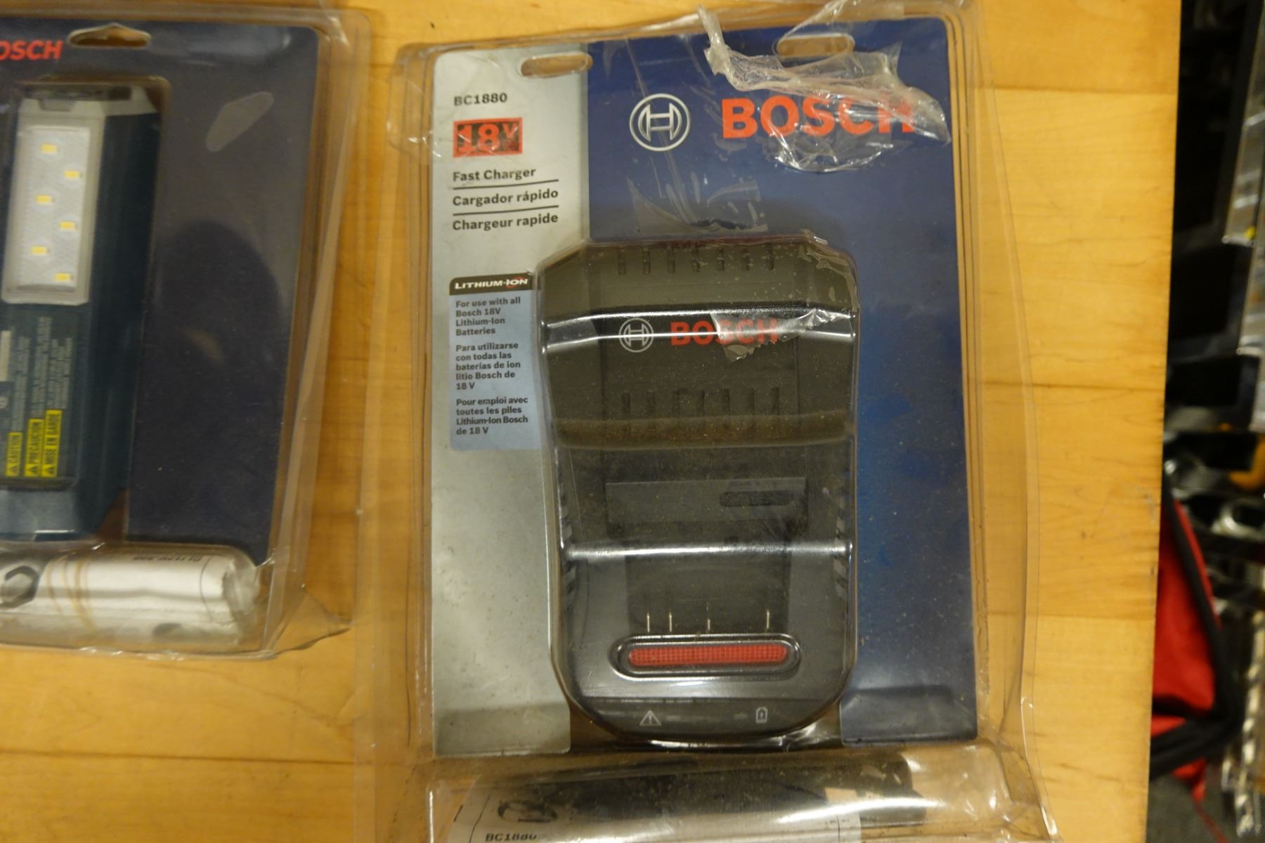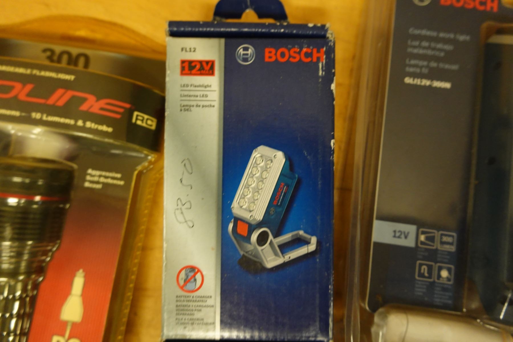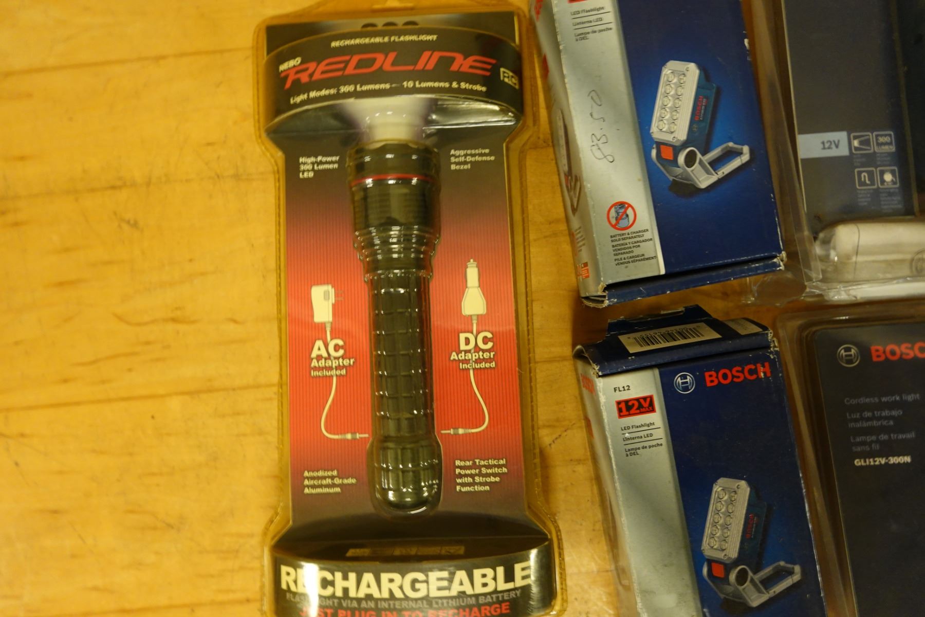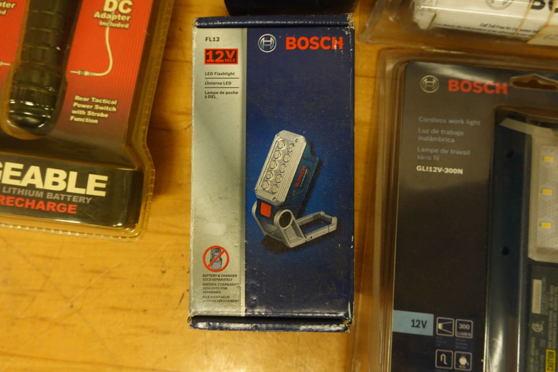 Multiple Bosch Cordless Work Lights, Batteries & Charging Accessories