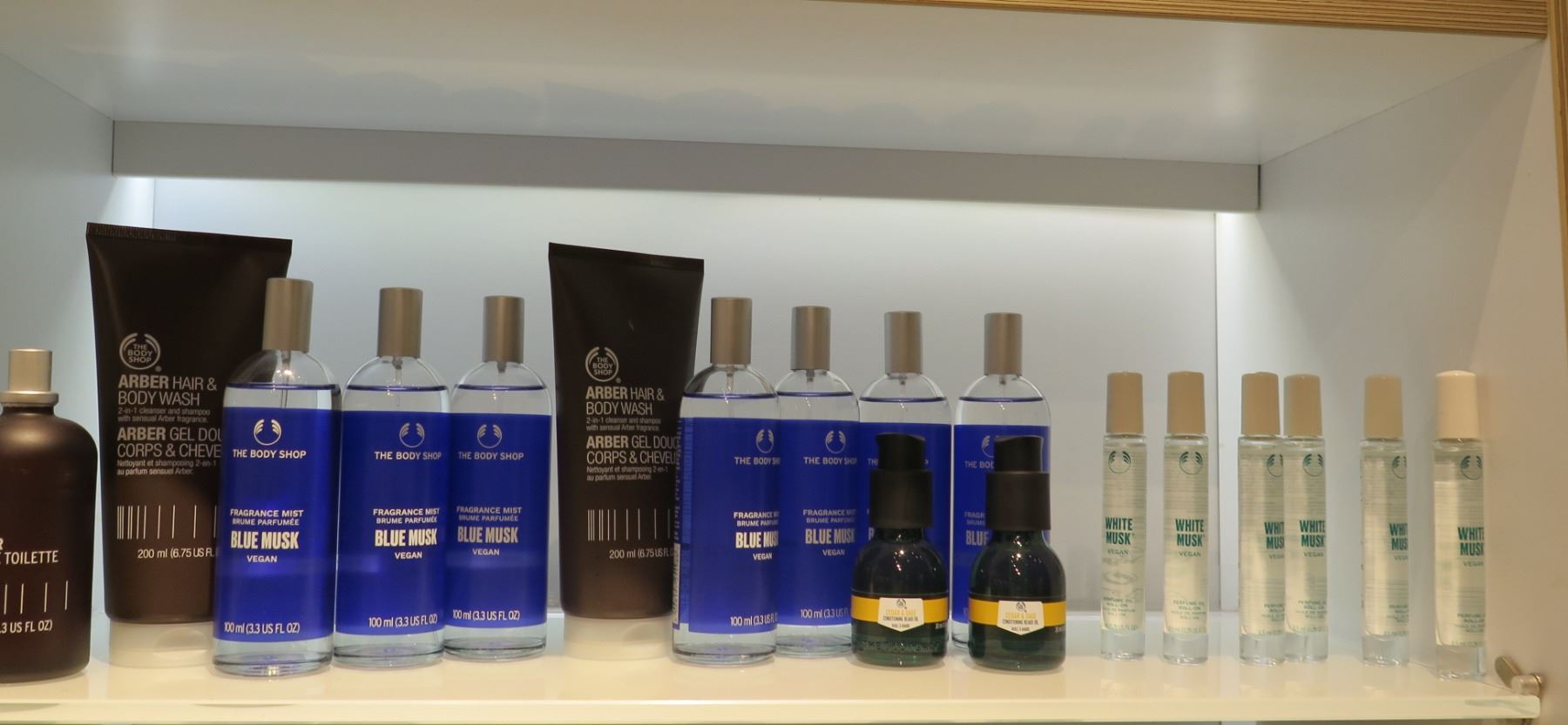Multiple Bottles The Body Shop Blue Musk Fragrance Mist, Arber Hair & Body Wash, etc