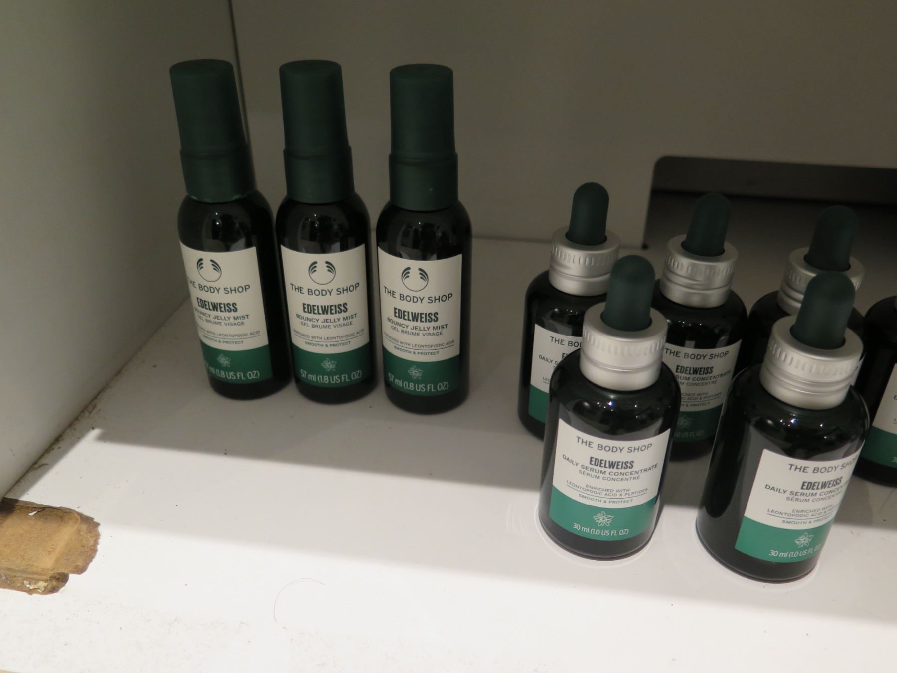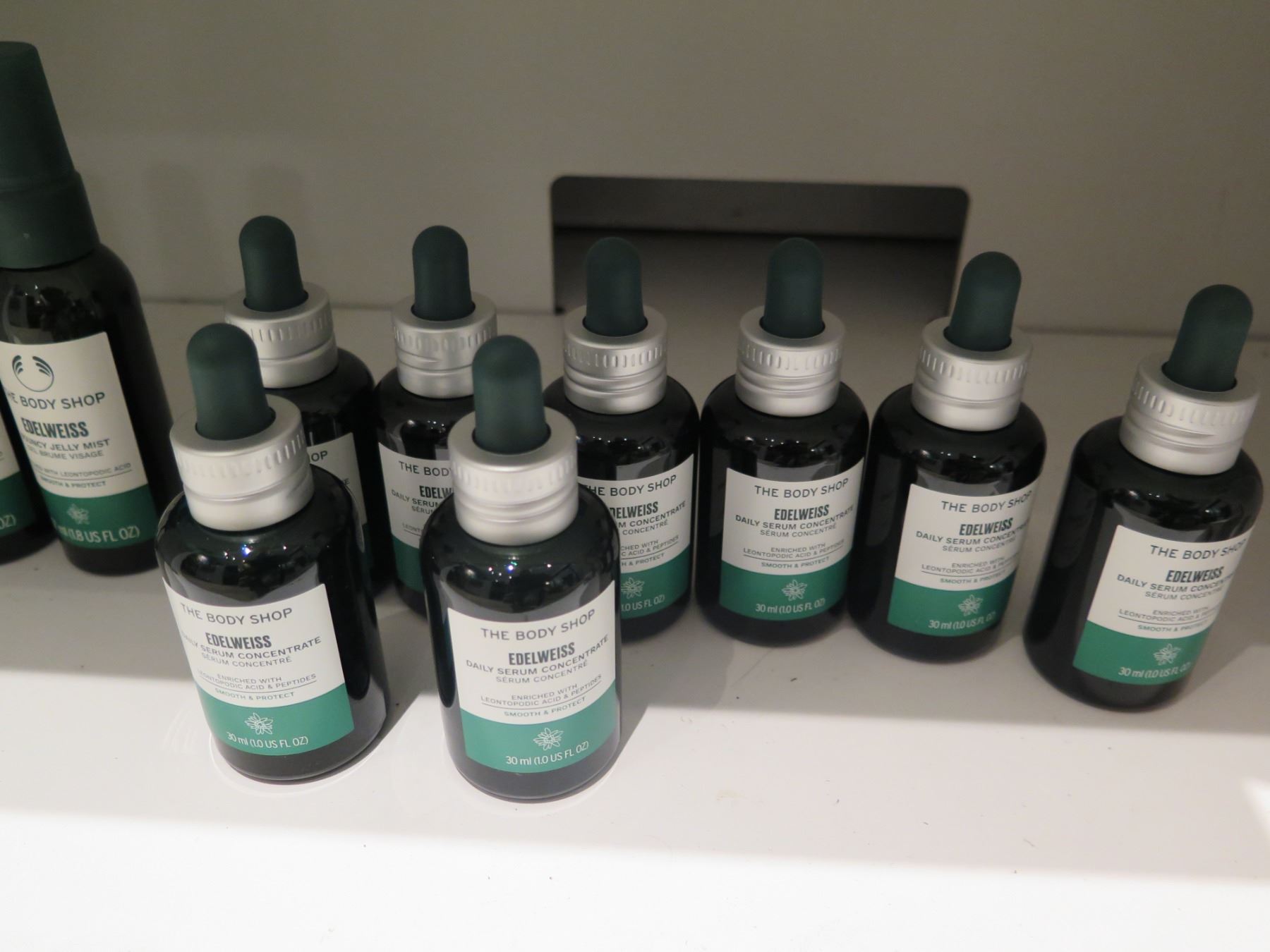 Multiple Bottles The Body Shop Edelweiss Prep Essence, Serum Concentrate, Jelly Mist w/ Roots of Strength Serum